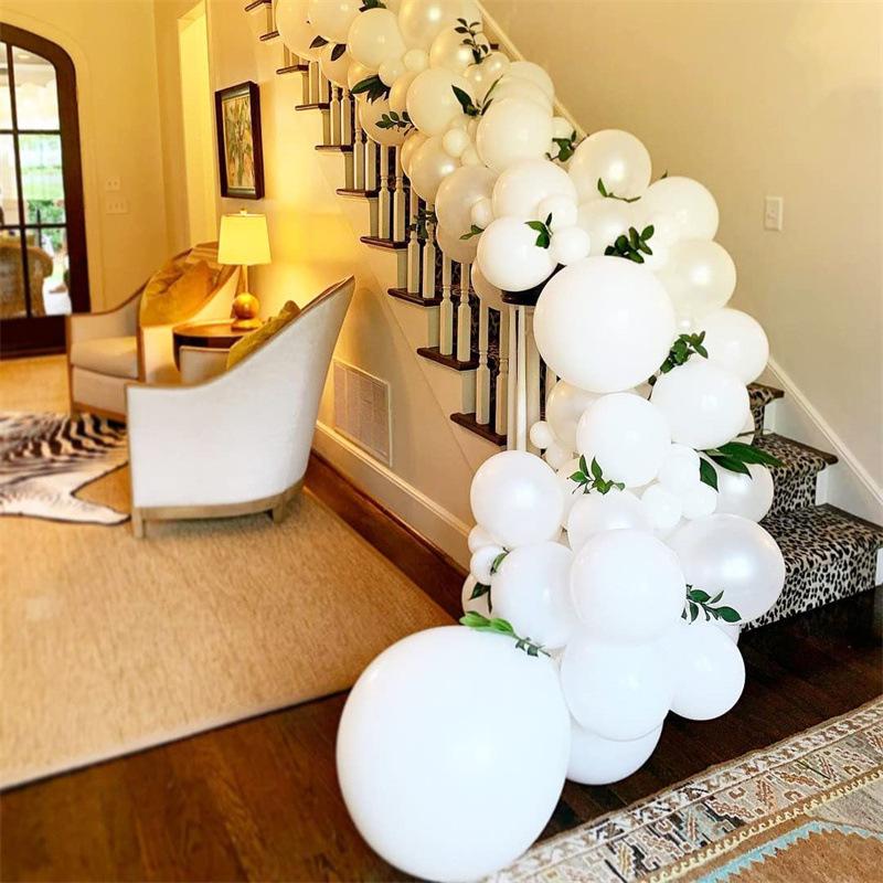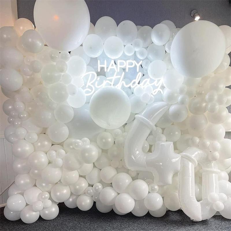 Globos Blanco Pastel en Diferentes Tamaños: El Set de Arco de Guirnalda de Globos Blancos incluye 4 globos de látex blancos de 18", 30 globos de látex blancos de 12", 20 globos de látex blancos de 10", 30 globos de látex blancos de 5" y 15' de cinta para globos, 100 puntos de pegamento