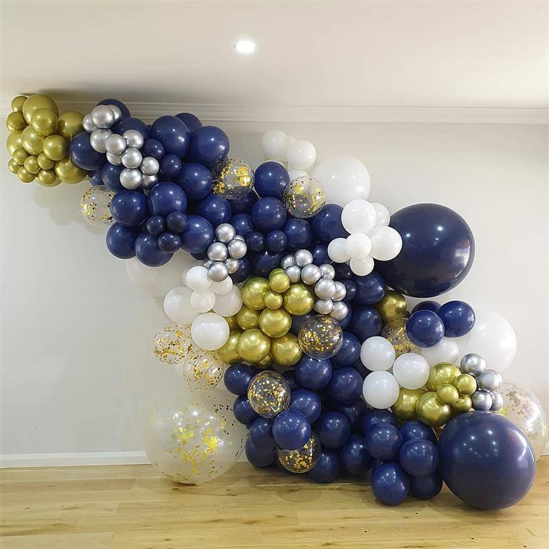 Diferentes Tamaños Globos Azul Marino: El Set de Arco de Guirnalda de Globos Azul Marino incluye 4 Globos de Látex Azul Marino de 18 pulgadas, 30 Globos de Látex Azul Marino de 12 pulgadas, 20 Globos de Látex Azul Marino de 10 pulgadas, 30 Globos de Látex Azul Marino de 5 pulgadas y Cinta para Globos de 15 pies, 100 Puntos de Pegamento