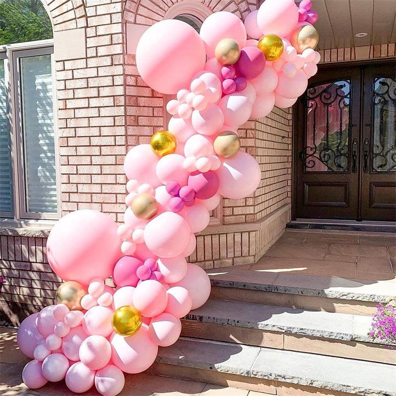 Diferentes Tamaños de Globos Rosa Bebé: El set de arco de guirnalda de globos rosa bebé incluye 4 piezas de globos de látex rosa de 18 pulgadas, 30 piezas de globos de látex rosa de 12 pulgadas, 20 piezas de globos de látex rosa de 10 pulgadas, 30 piezas de globos de látex rosa de 5 pulgadas y 17 pies de cinta para globos, 100 puntos de pegamento.