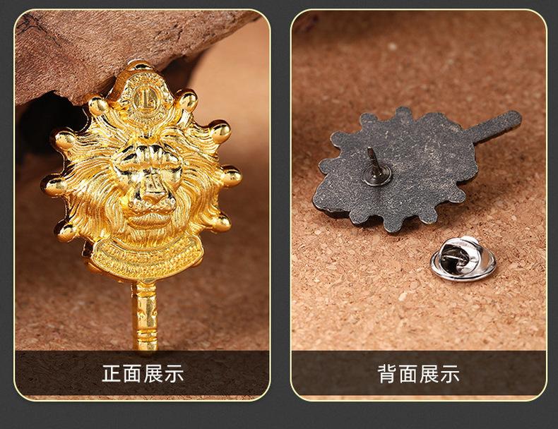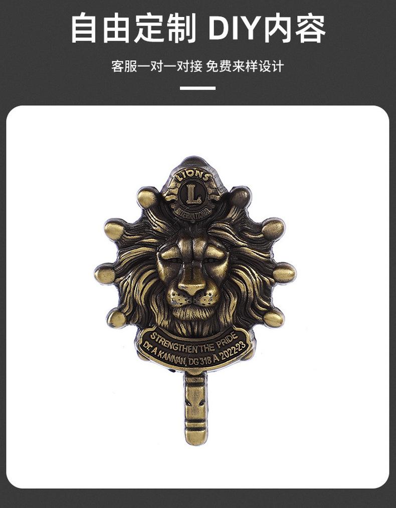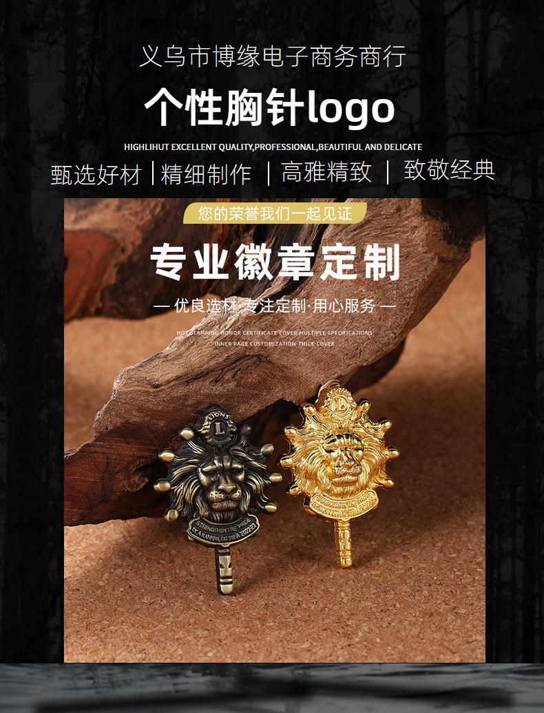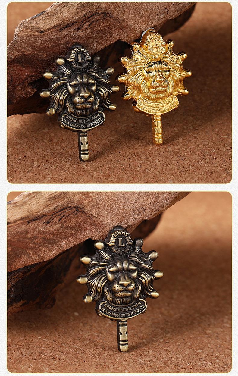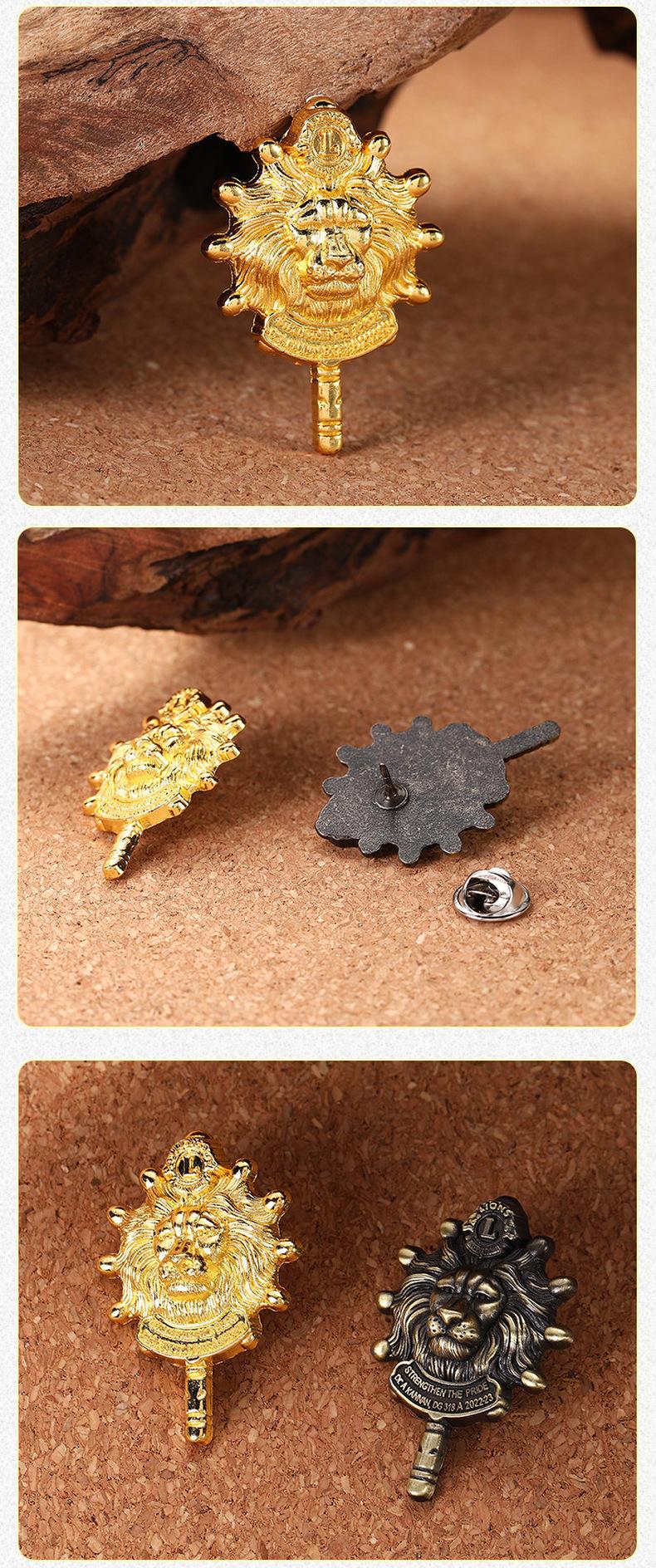 Medalla con diseño de letra inglesa Cabeza de león Broche de personalidad Unión de Estudiantes logotipo Animal Cabeza Humana Bronce Broche de león