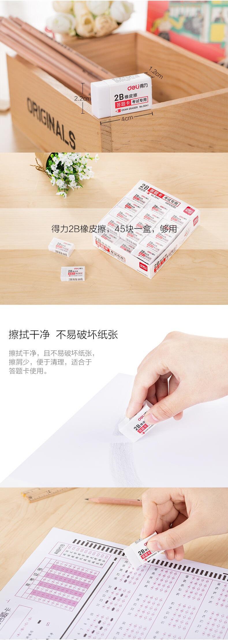 Borrador de prueba Deli 3041, tamaño pequeño, blanco, para escuela primaria, para oficina y arte.