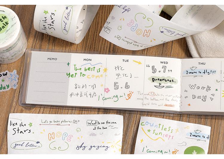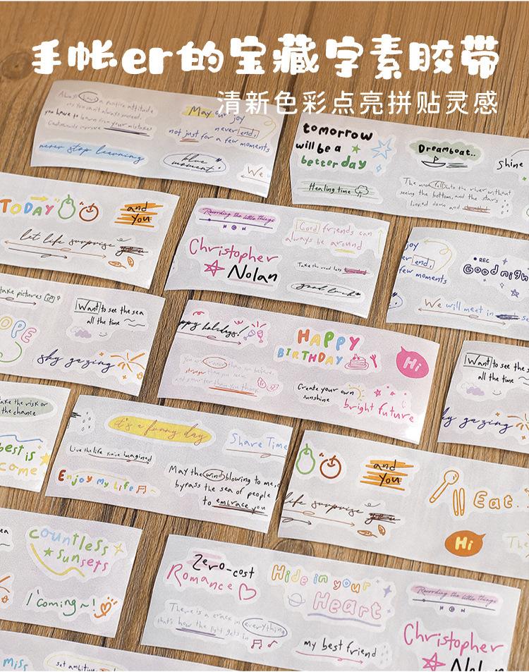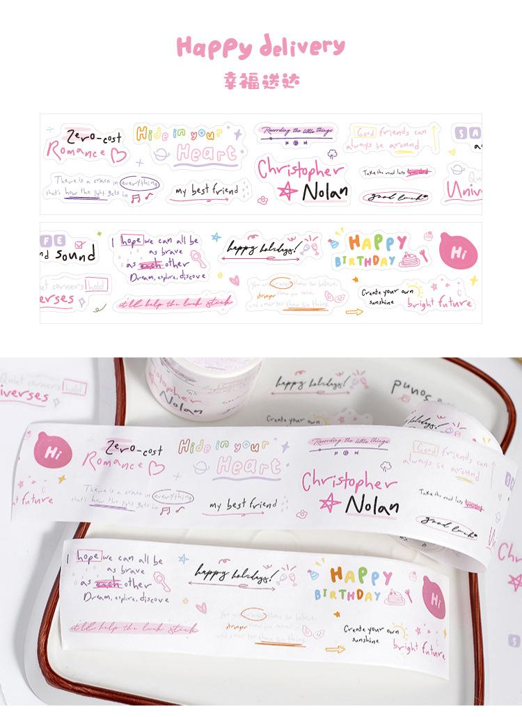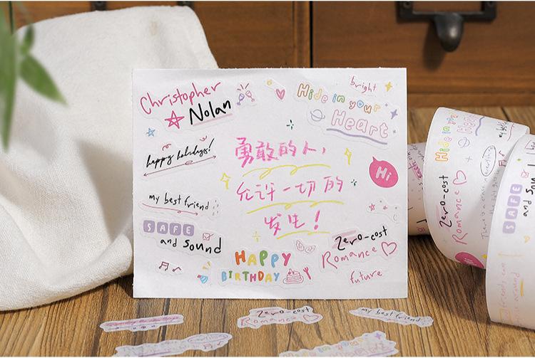 Amantes de las letras troqueladas y cinta de papel, grafiti escrito a mano, pequeño color fresco, cuenta de mano, decoración, collage, cinta DIY