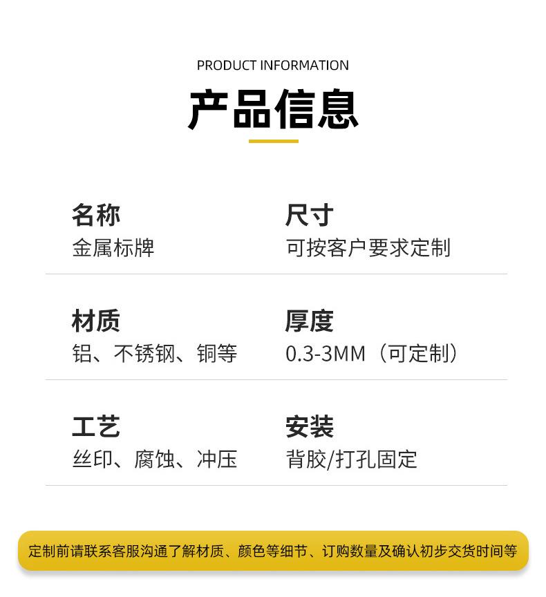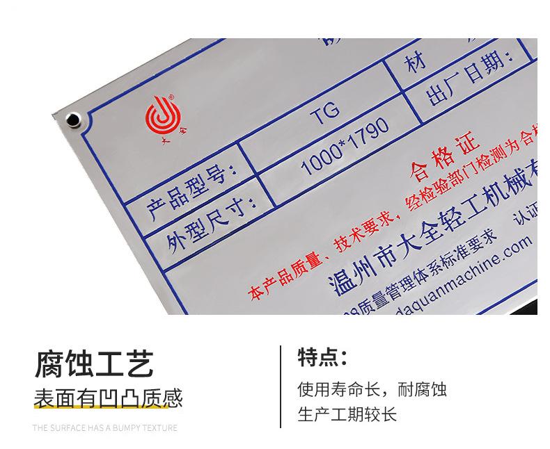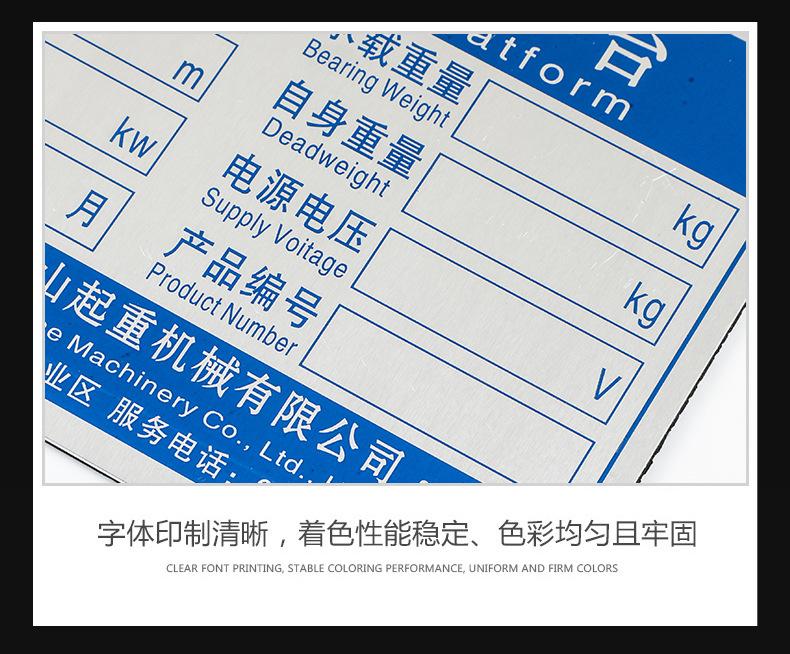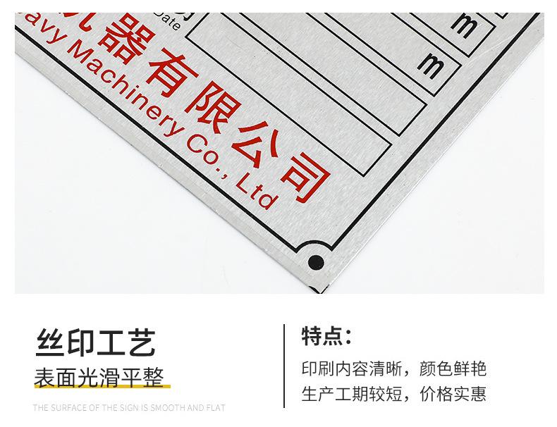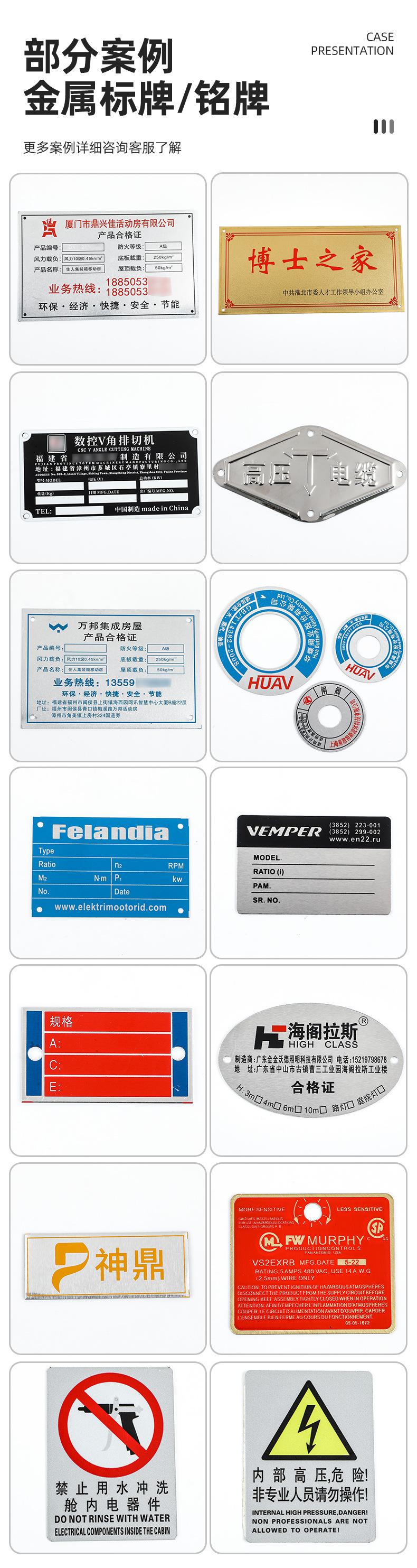 Placa de metal personalizada Acero inoxidable Aluminio Cobre Impresión de alambre UV Corrosión Máquina Equipo Máquina herramienta Panel Cable Señal