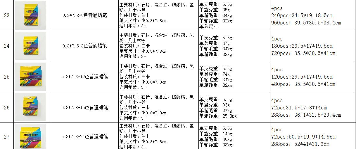 6 colors regular packaging, 8 colors regular packaging, 12 colors regular packaging, 24 colors regular packaging