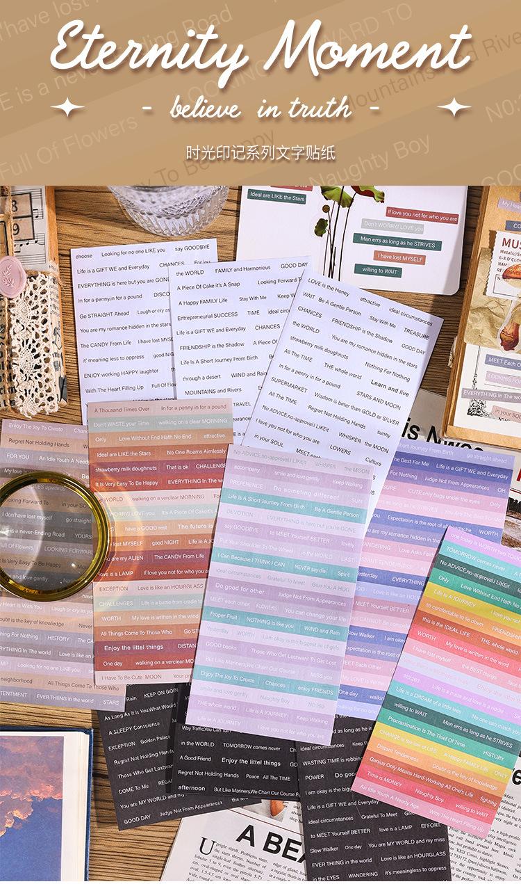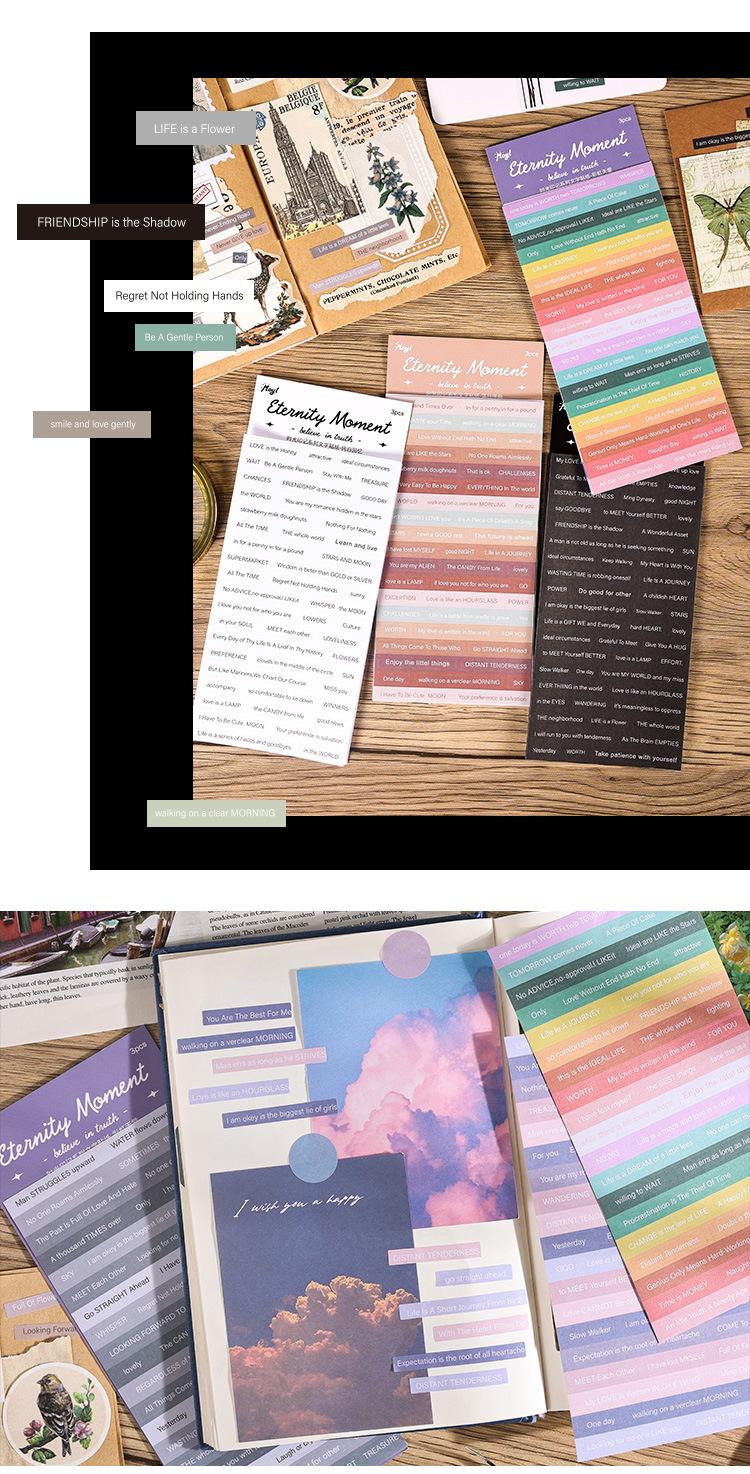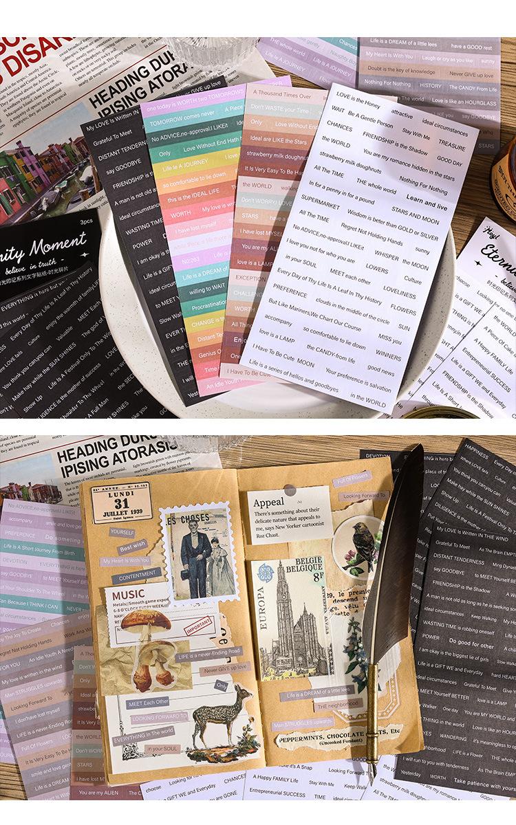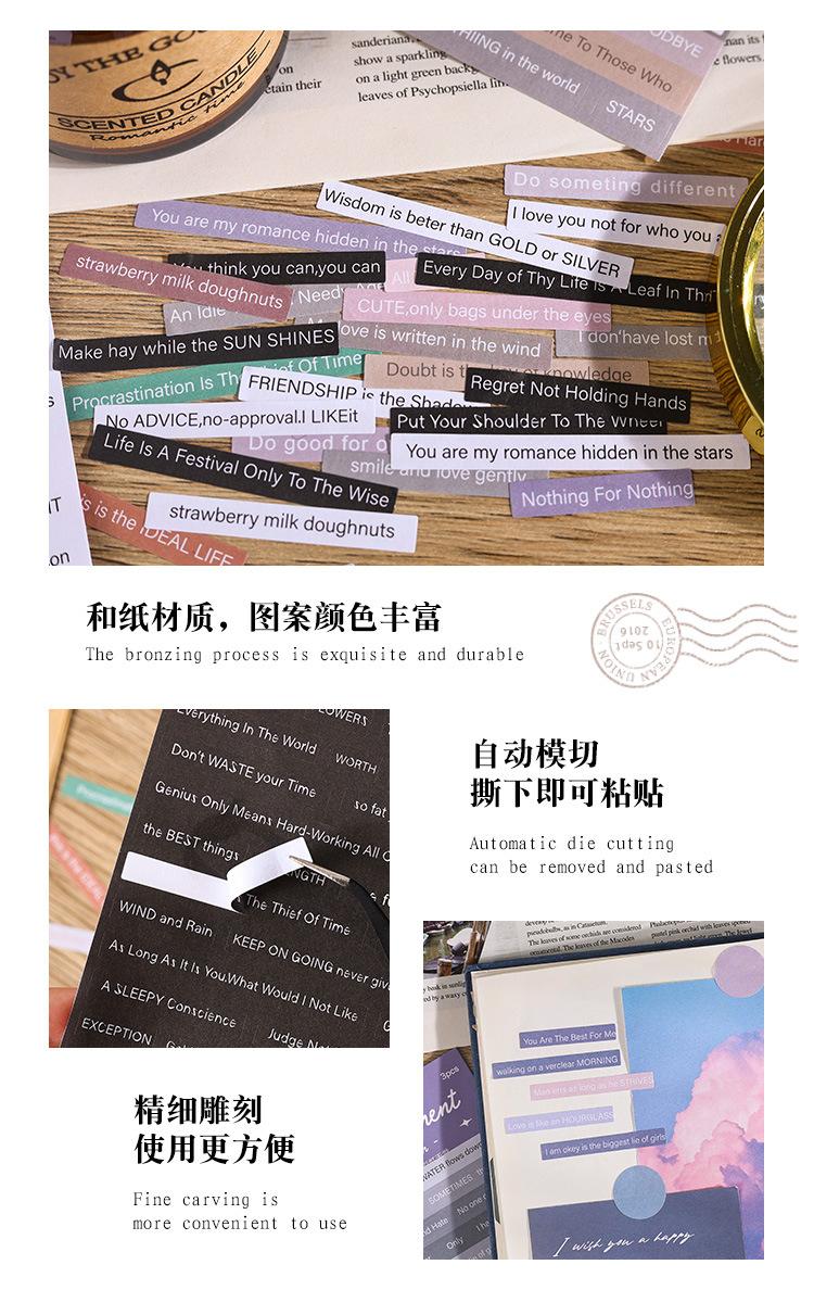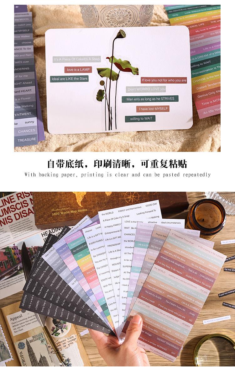 Pegatinas largas con letras en inglés, creativas y sencillas, para collage de libros de mano, etiquetas básicas, pegatinas pequeñas para hacer uno mismo