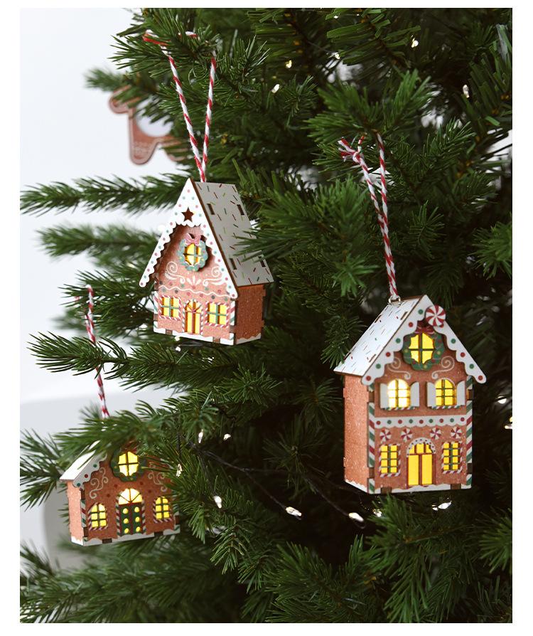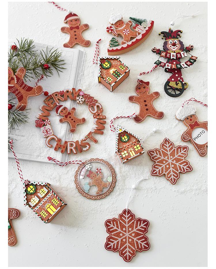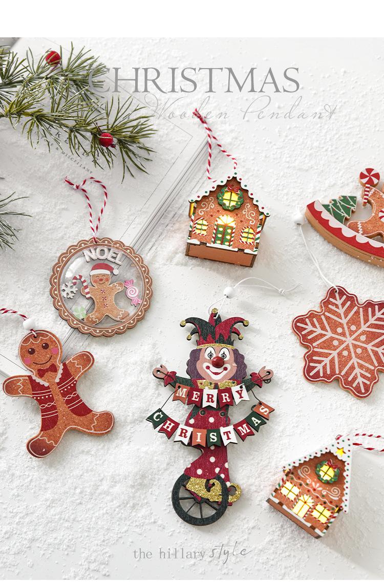 NUCHI Amazon Transfronterizo Navidad Casa de Madera Brillante Pequeño Colgante Decoraciones para Árbol de Navidad Adornos Colgantes de Navidad