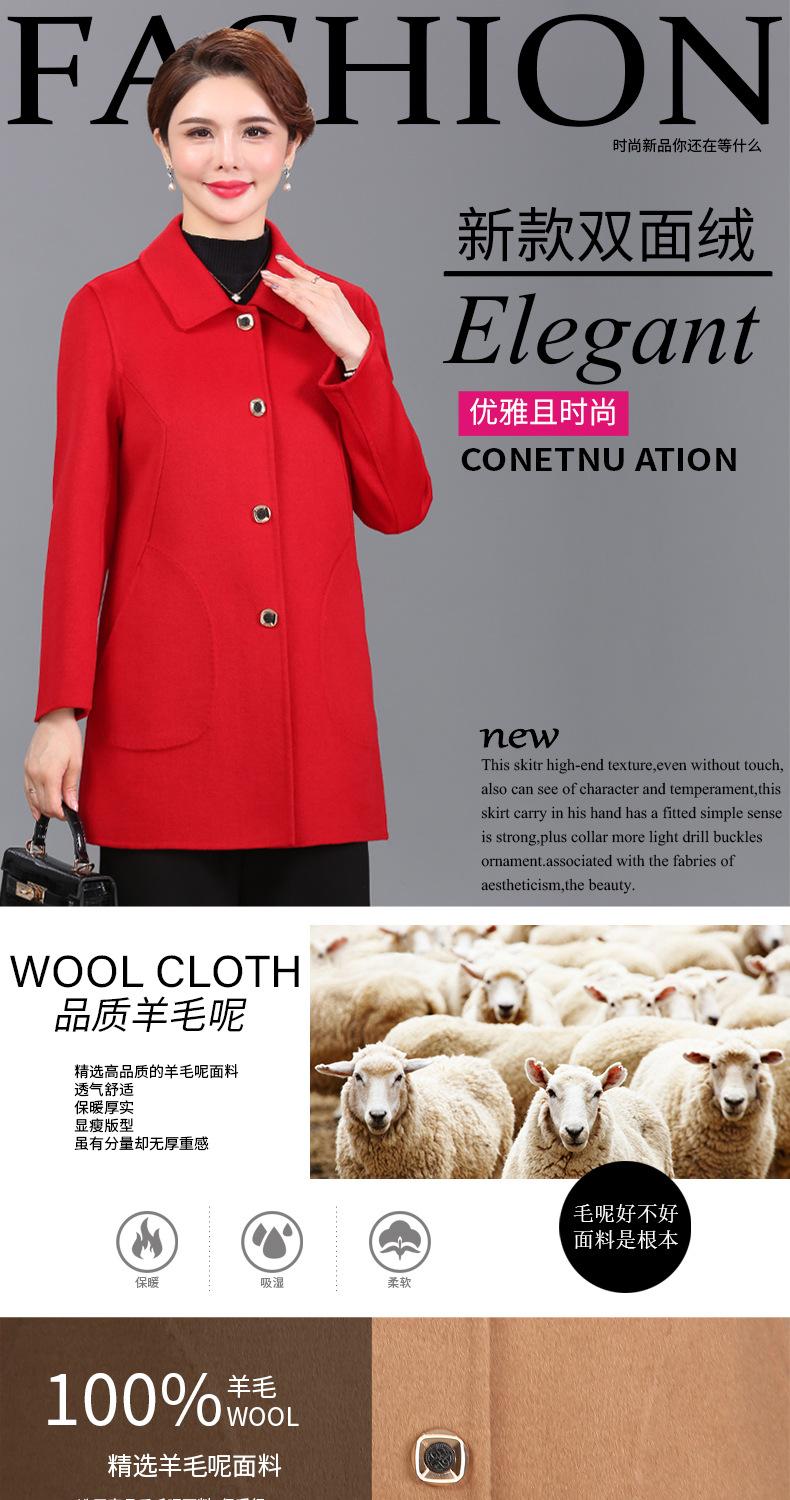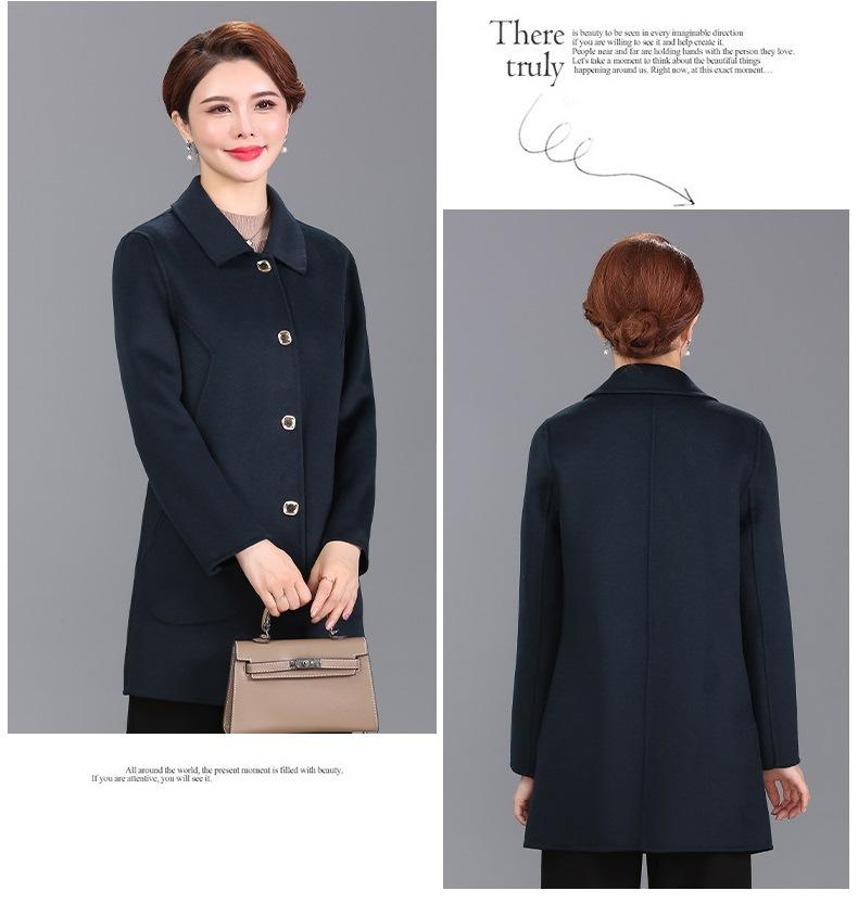 Abrigo de cachemira de doble cara para mujer de mediana edad y anciana, corto, otoño e invierno 2021, nuevo abrigo de lana suelto para madre de moda