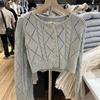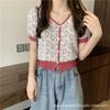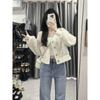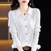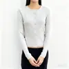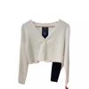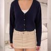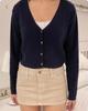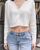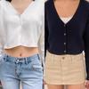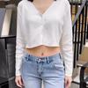 BM Hermoso cárdigan corto blanco de cuatro botones para mujer, suéter de punto con cuello en V y manga larga con botones, top de cintura alta para chica sexy BM