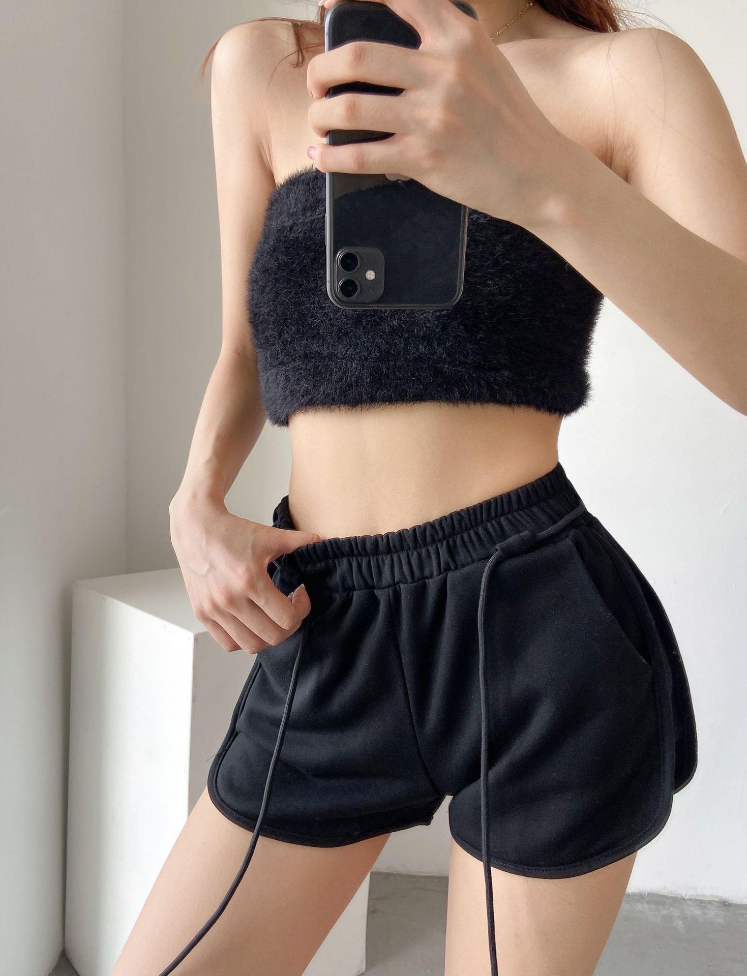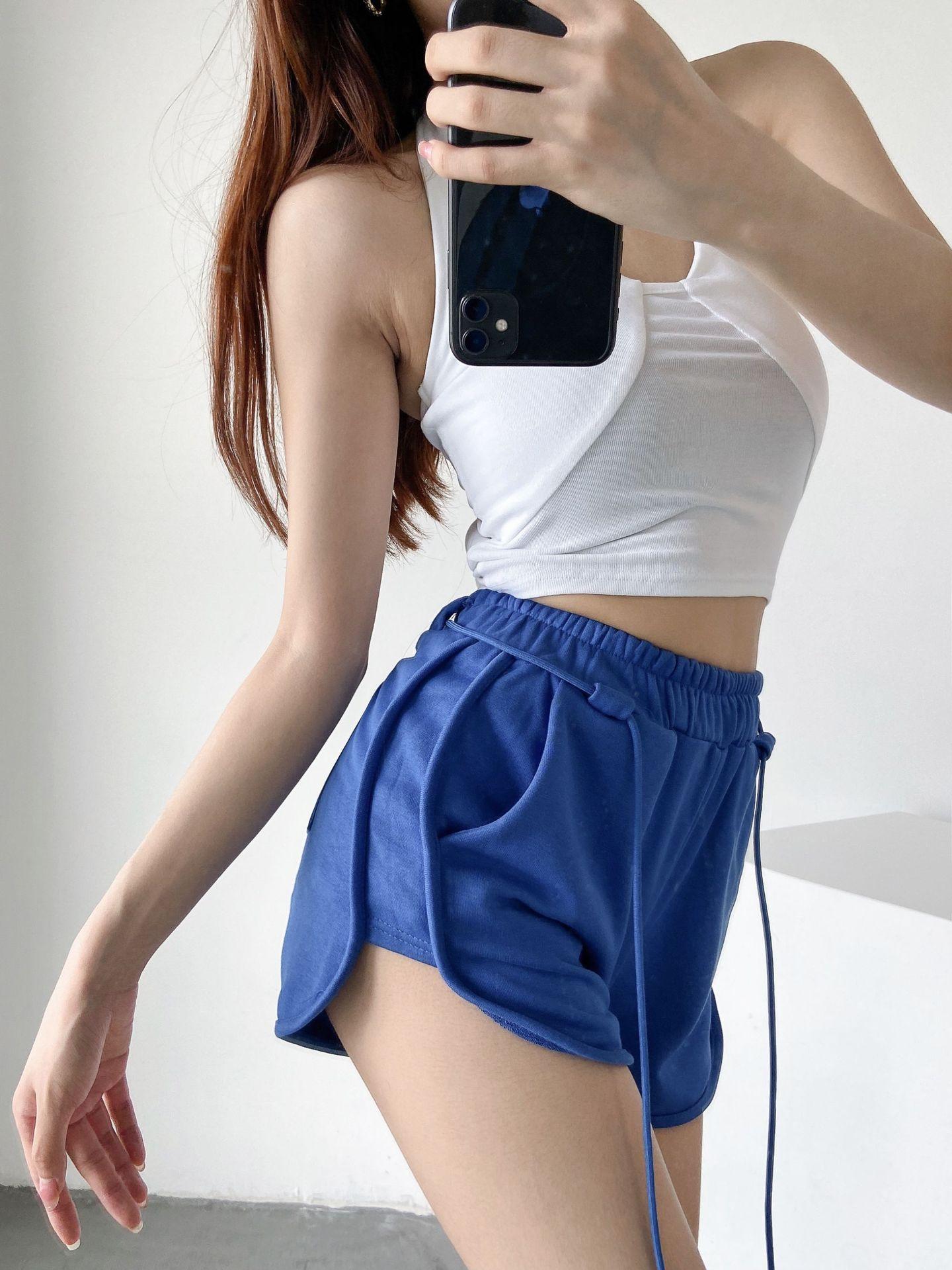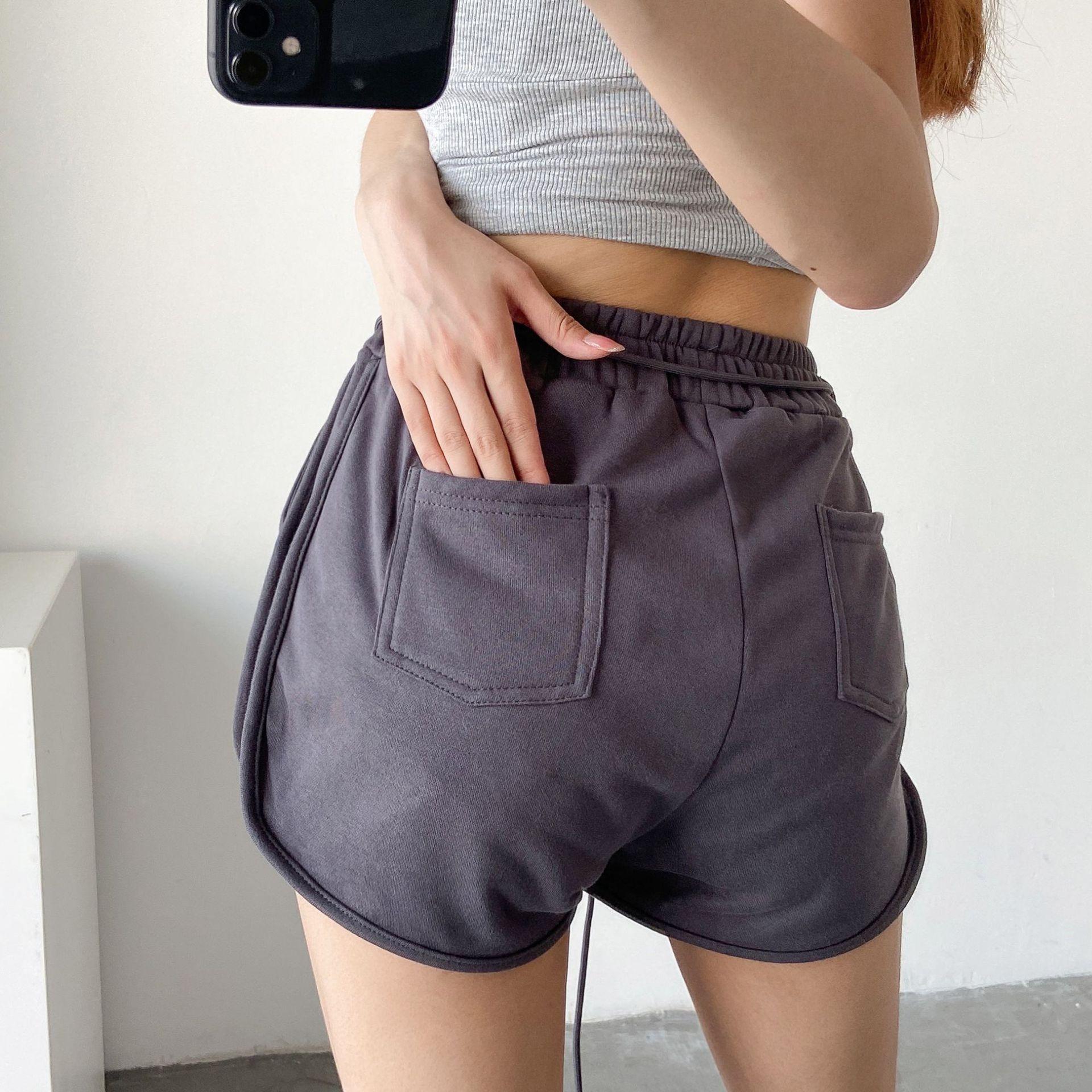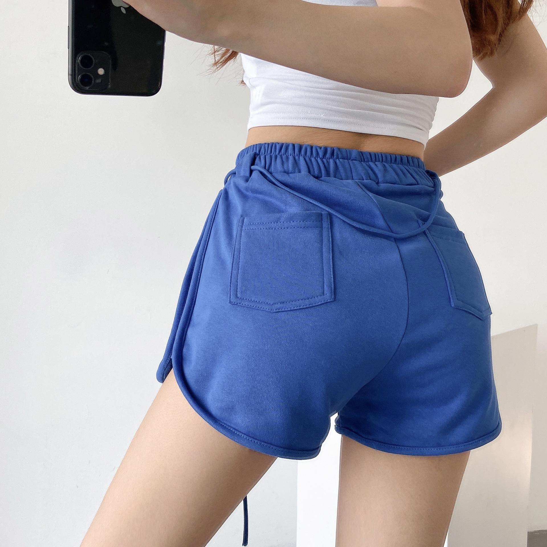 Pantalones cortos de cintura alta con bolsillos divididos, elásticos, con cordón y laterales curvos, novedad de verano de 2022, venta al por mayor