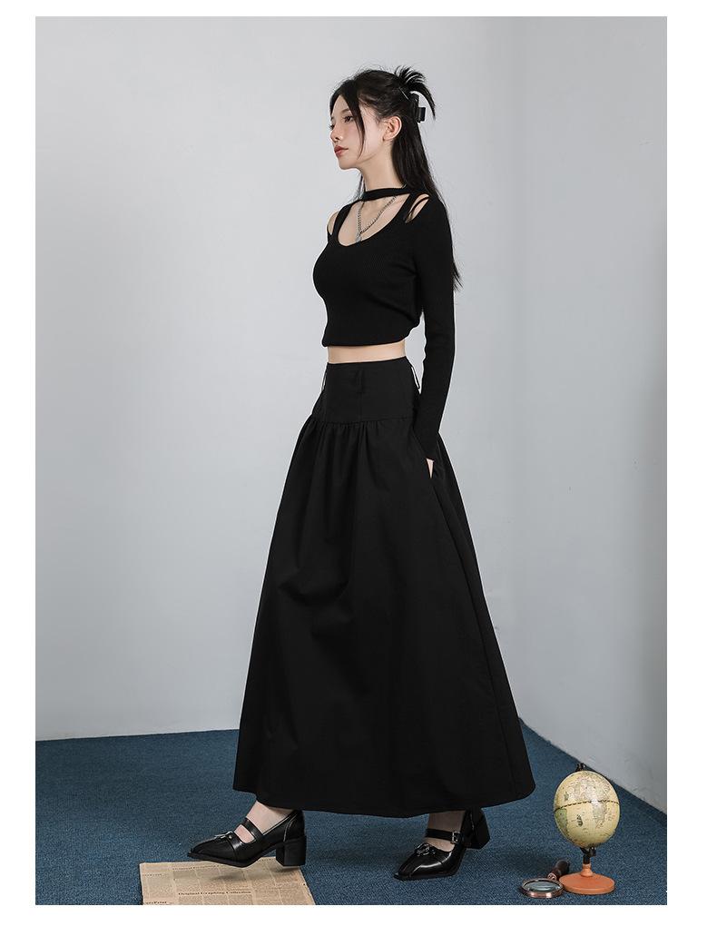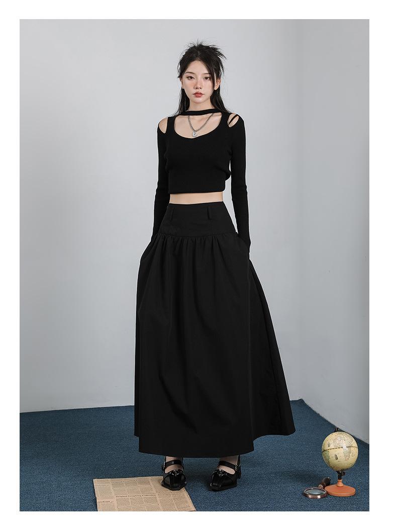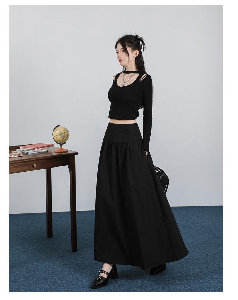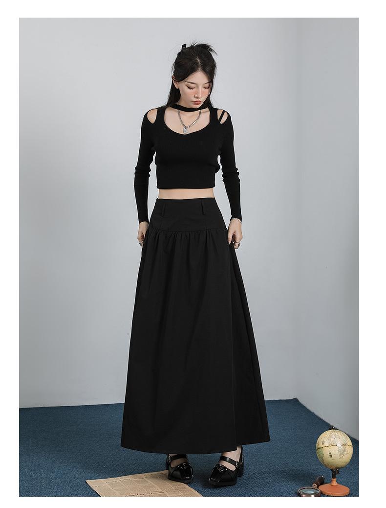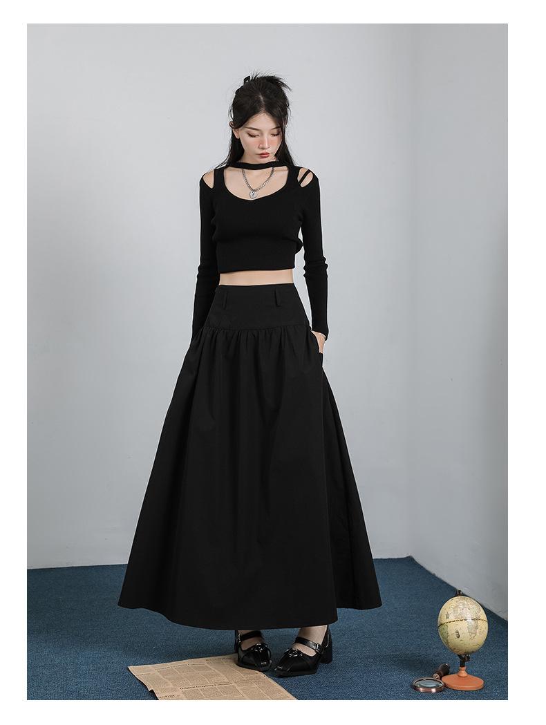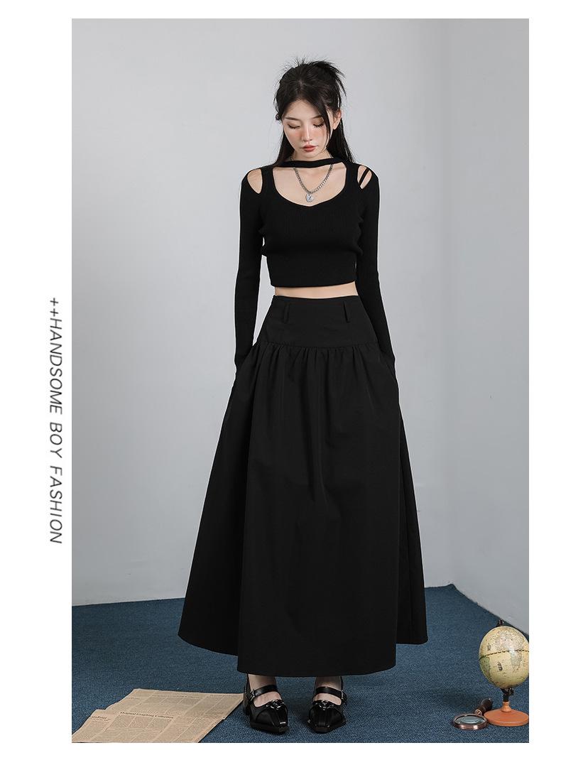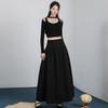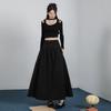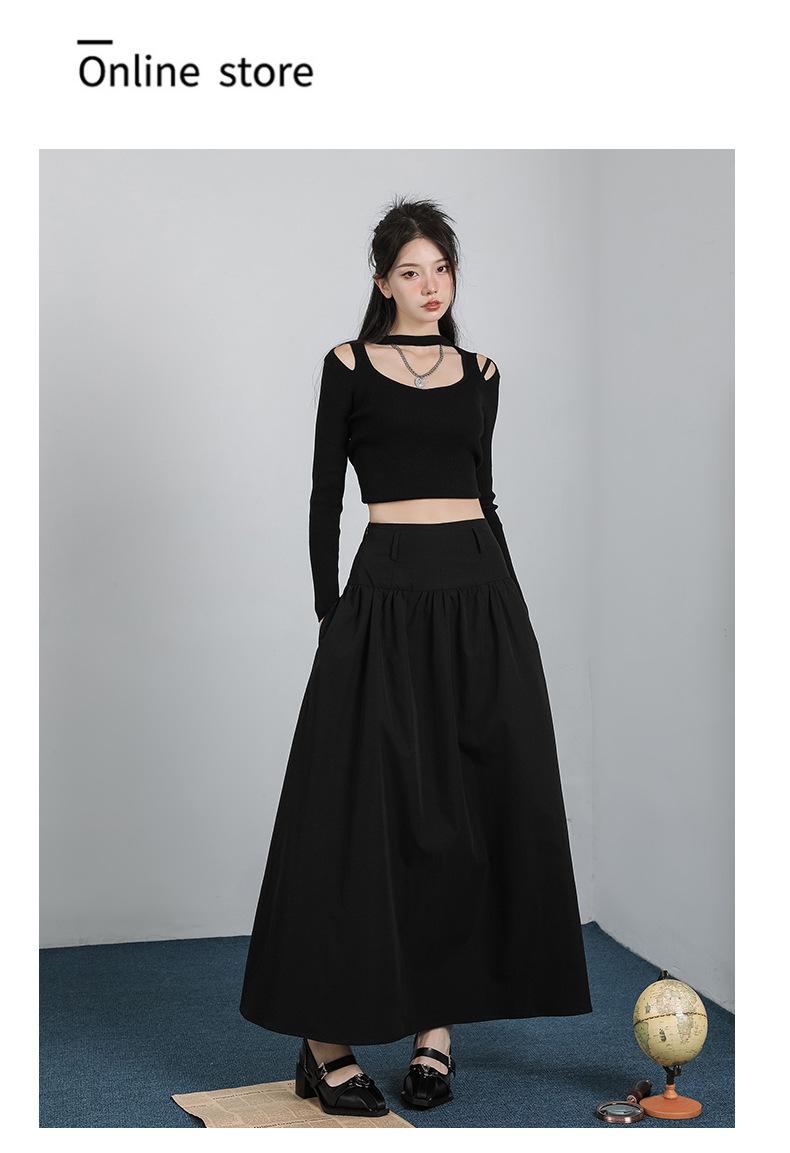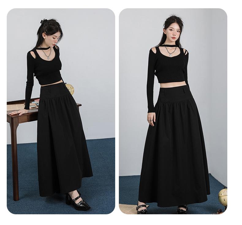Falda negra retro para mujer, falda larga plisada pequeña de otoño, falda acampanada de cintura alta, falda larga tipo paraguas