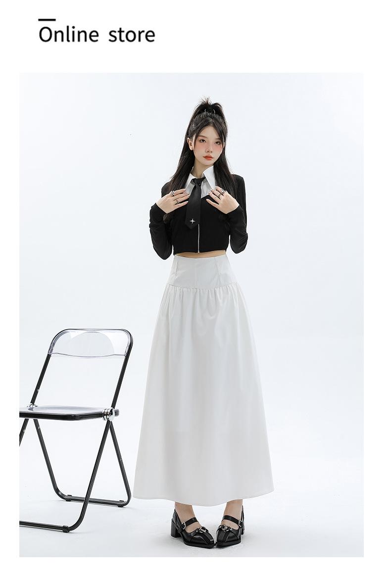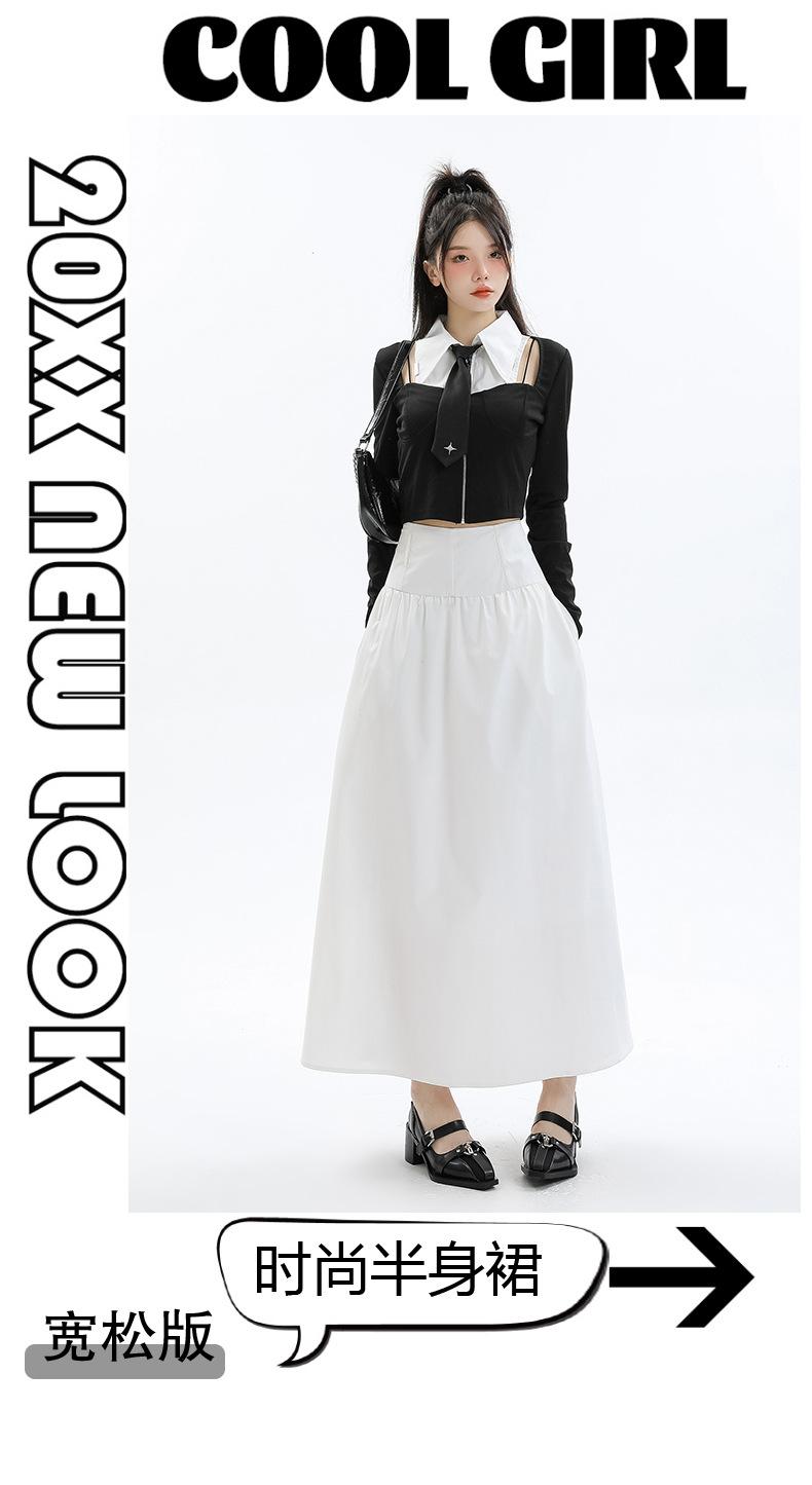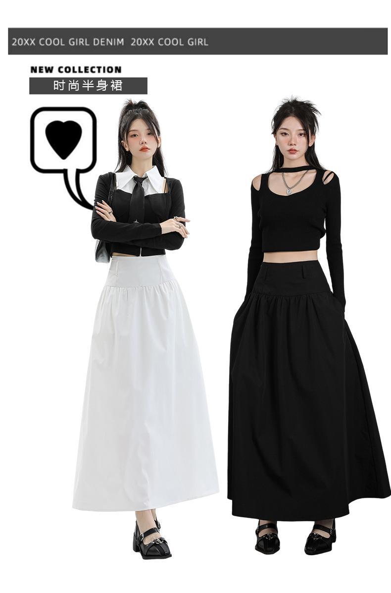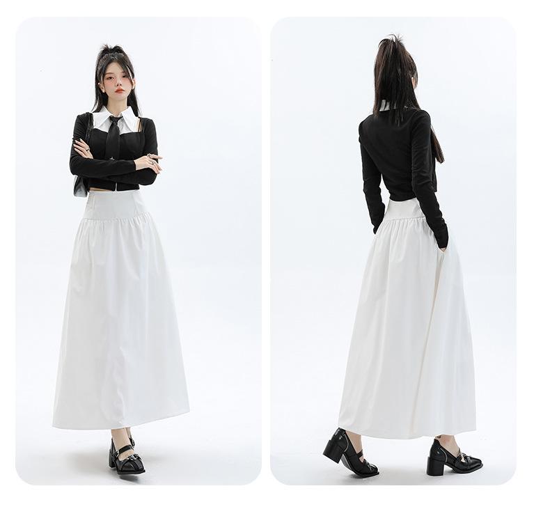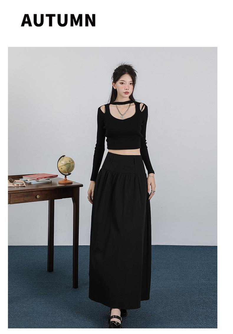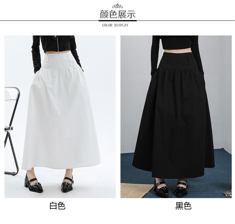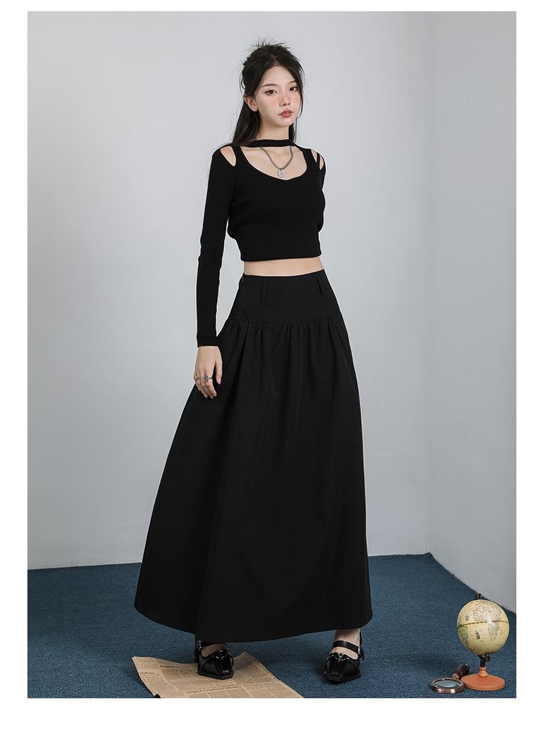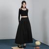 Falda negra retro para mujer, falda larga plisada pequeña de otoño, falda acampanada de cintura alta, falda larga tipo paraguas