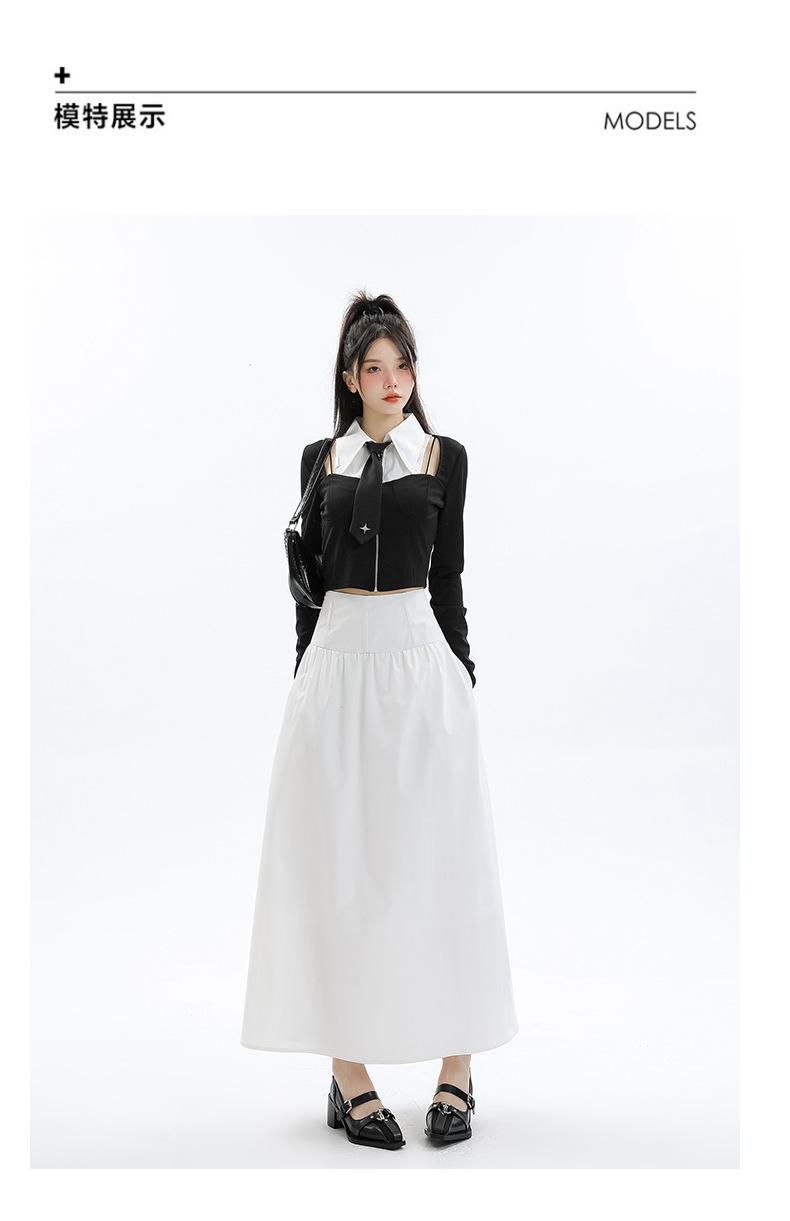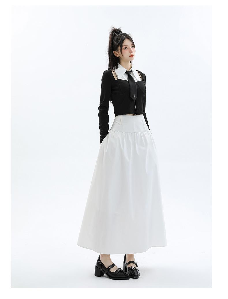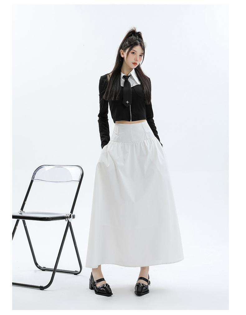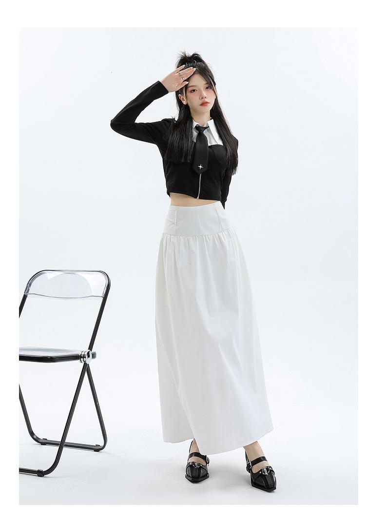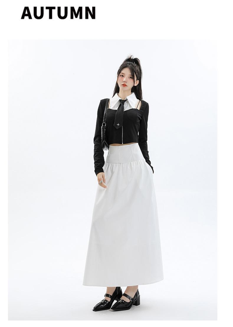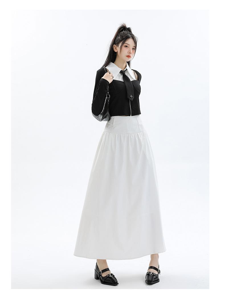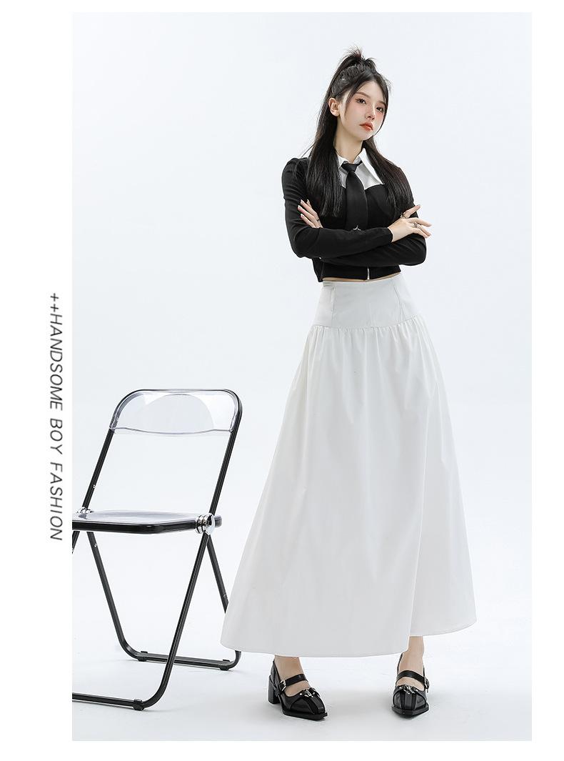 Falda negra retro para mujer, falda larga plisada pequeña de otoño, falda acampanada de cintura alta, falda larga tipo paraguas