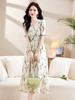Vestido de Seda para Mujer 2022 Cuello en V con Cuentas Elástico Cintura Alta Seda de Morera Largo Medio para el Trabajo Elegante con Lazo