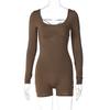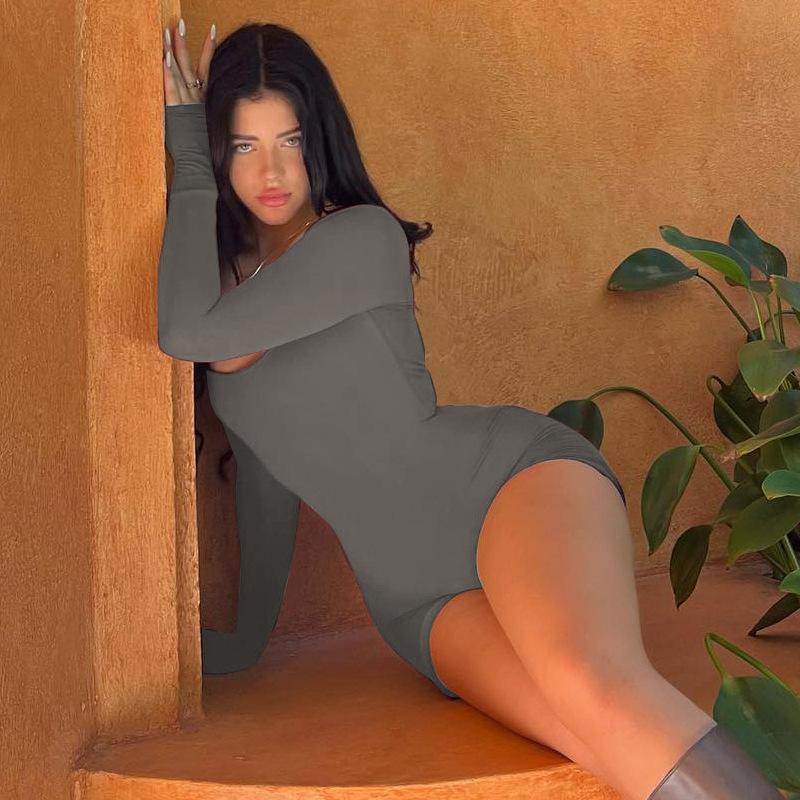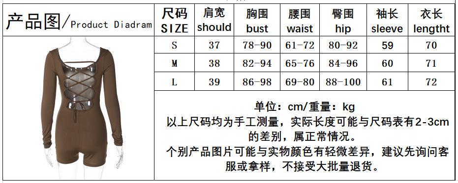 Mono Deportivo Ajustado sin Espalda con Aberturas y Cordones de Encaje de Cuello U de Manga Larga para Mujer Transfronterizo Europeo y Americano Primavera Verano Venta al por Mayor