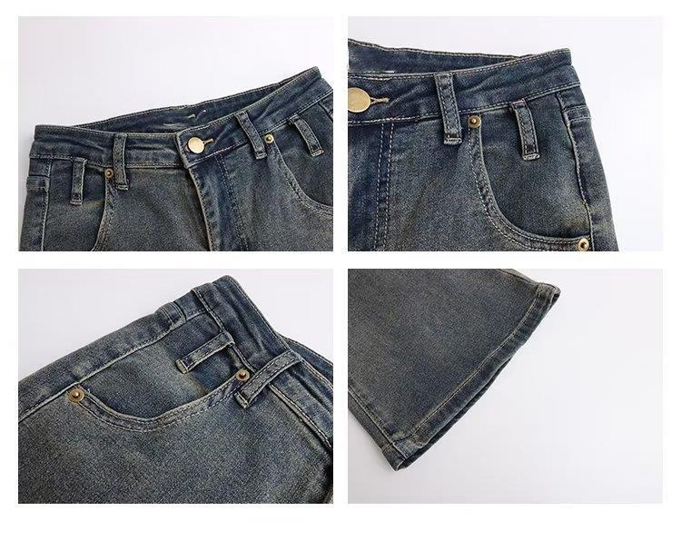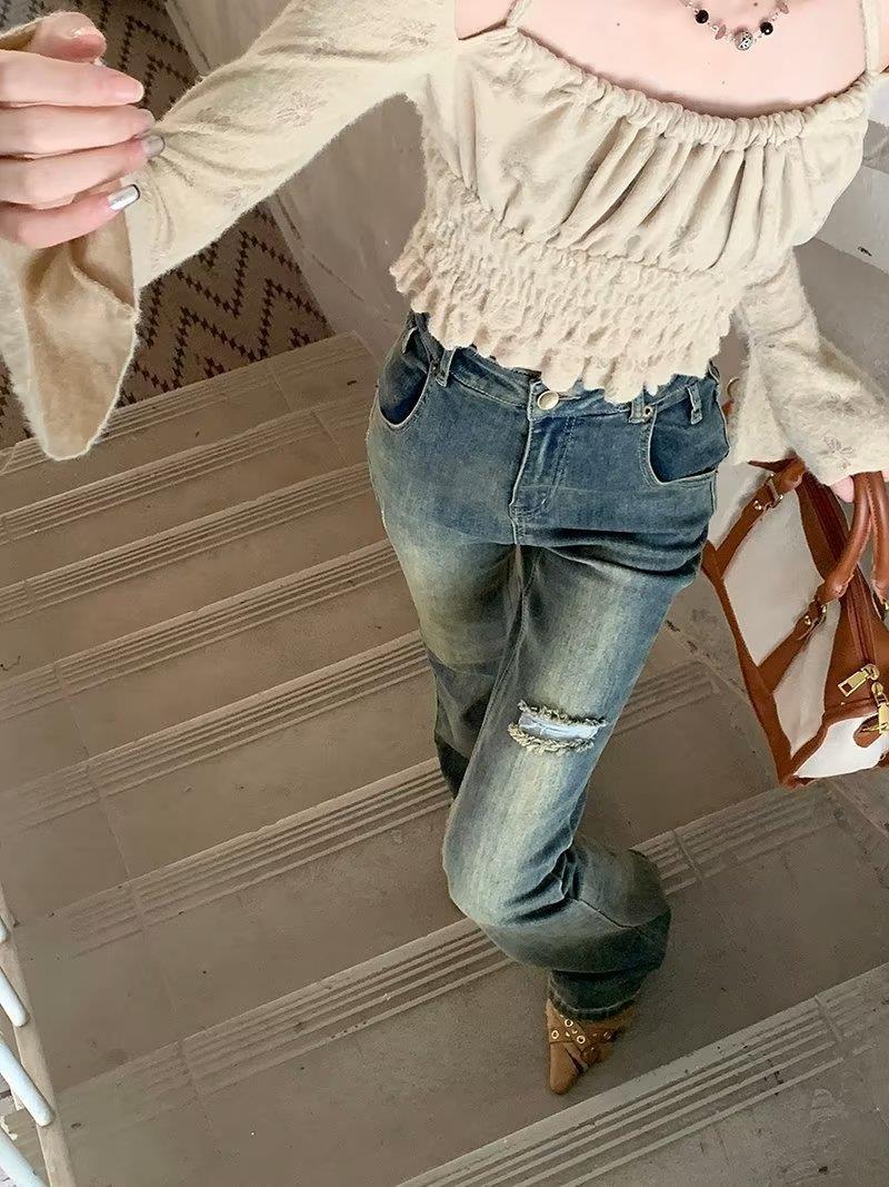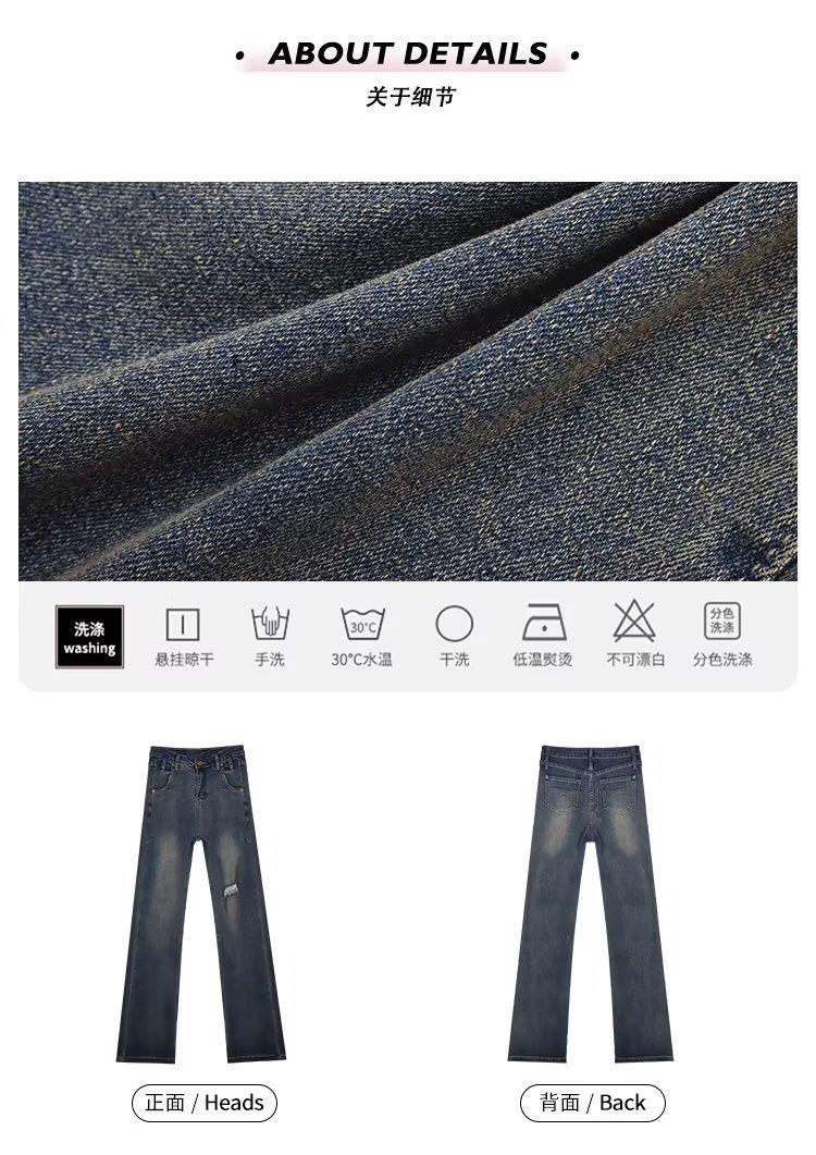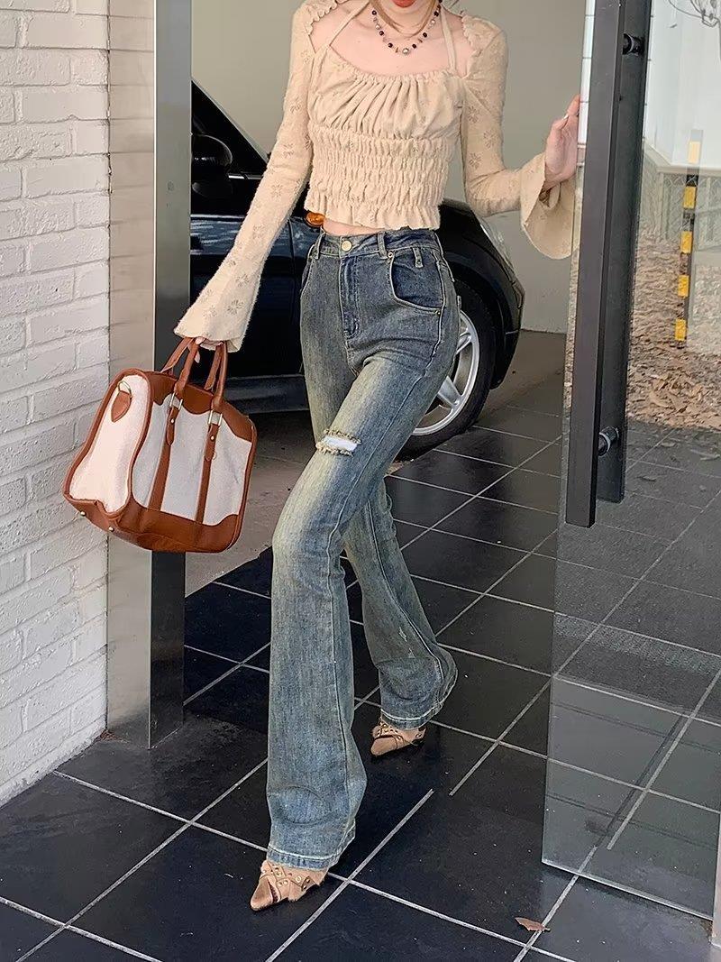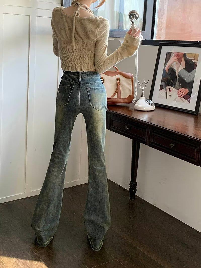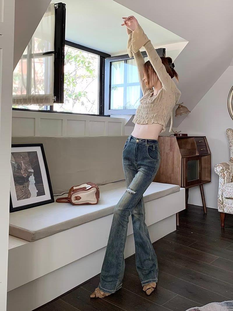 Jeans acampanados retro para mujer otoño e invierno rectos ajustados chica hot callejero rotos ajustados elásticos pantalones de trapeador para mujer