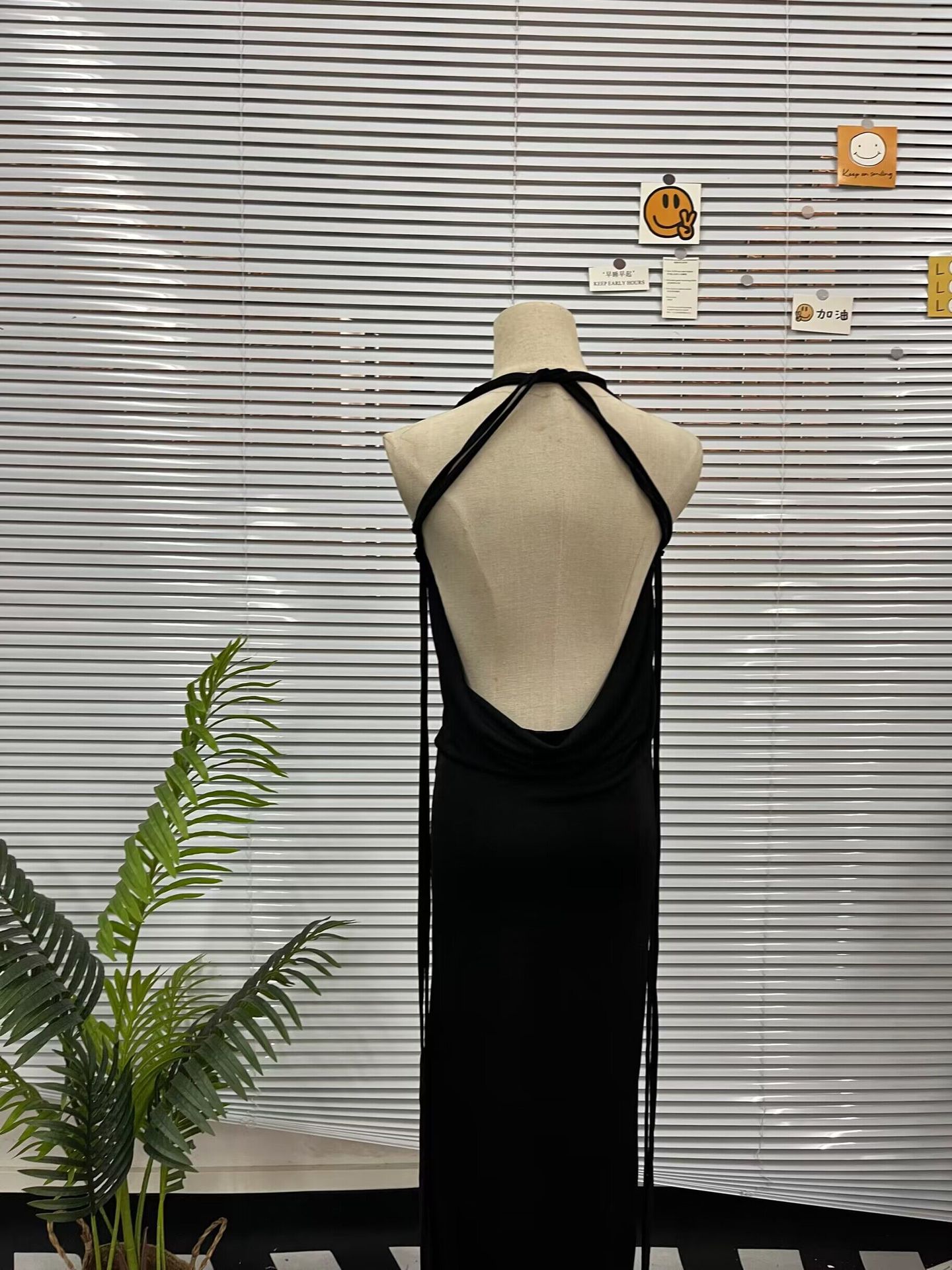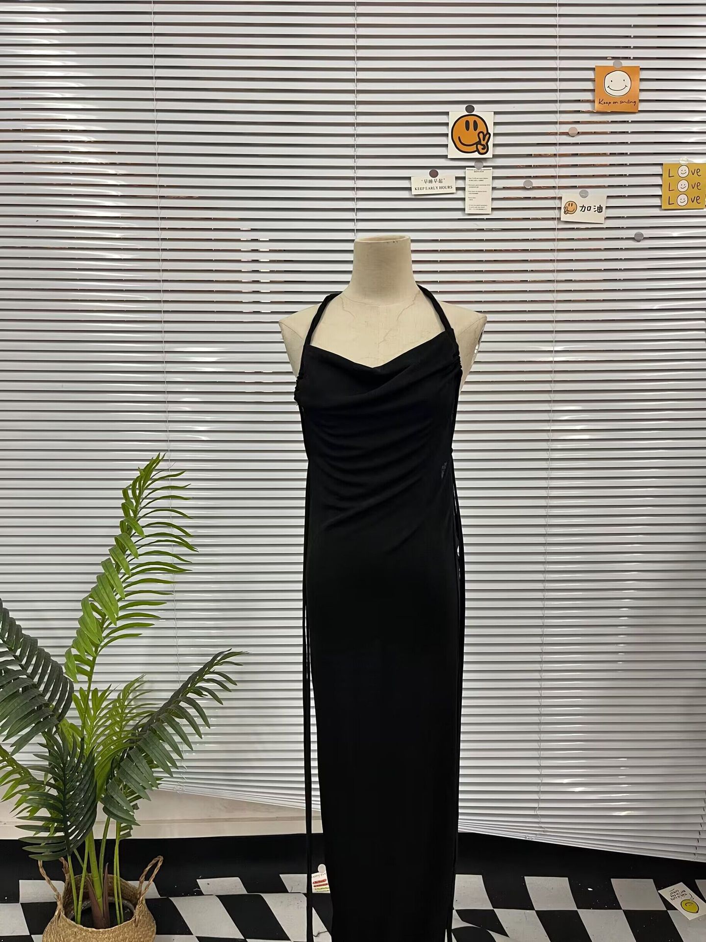 Estilo Europeo y Americano 2023 Transfronterizo Nuevo Sexy Ajustado Sexy Vestido Largo Tirantes Espalda Descubierta Falda de Cadera Falda Larga para Mujer