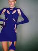 Vestido de verano europeo y americano dulce, picante, de color sólido, cuello redondo, manga larga, sexy, ajustado, con diseño distintivo para mujer