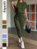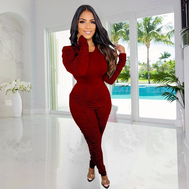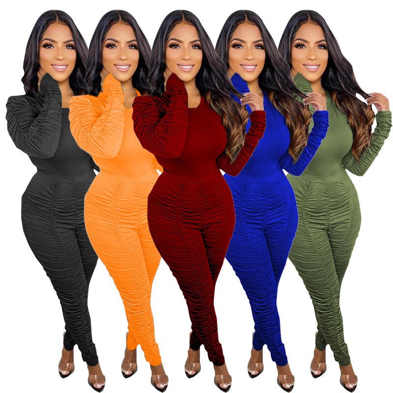 Traje informal de dos piezas con cuello redondo, manga larga y pliegues, color liso, estilo europeo y americano, Amazon Independent Station 2021
