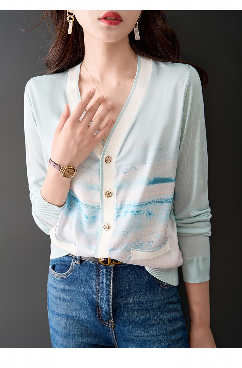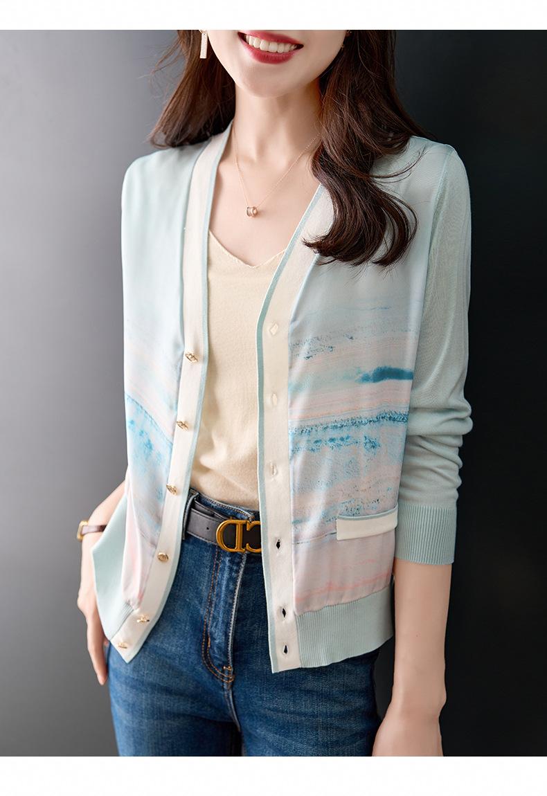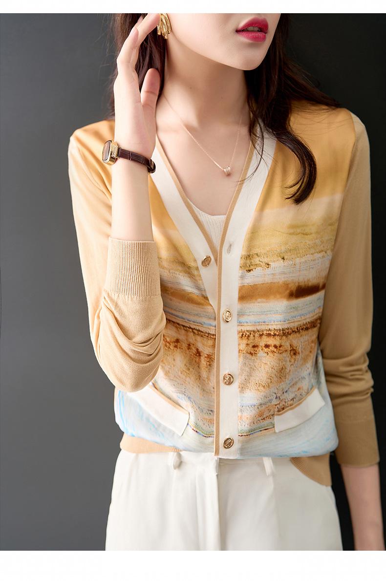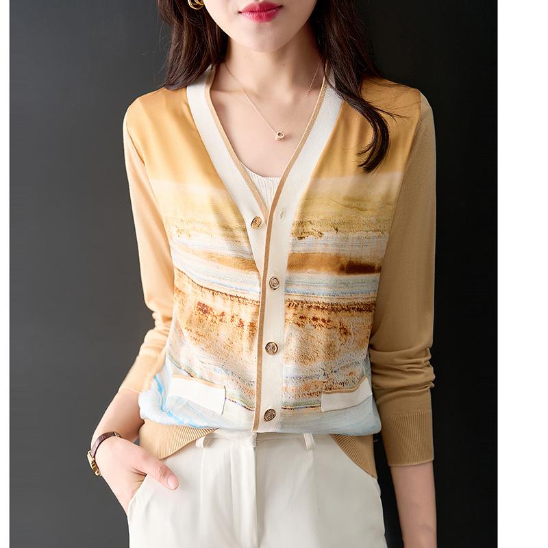 Cárdigan de punto para mujer, diseño fino, estilo nicho de otoño, abrigo de manga larga para mujer, cárdigan de protección solar con costuras de lyocell para mujer