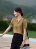 Camisa de mujer de manga corta de verano 2024, nueva camisa elegante, estilo francés, femenina y elegante, con cuello en V.
