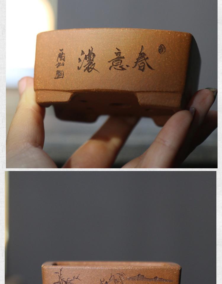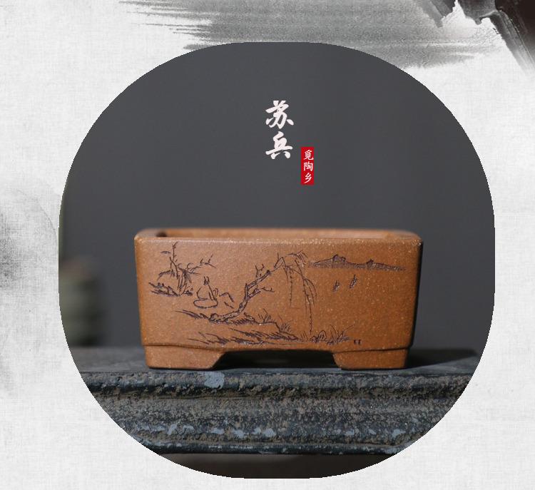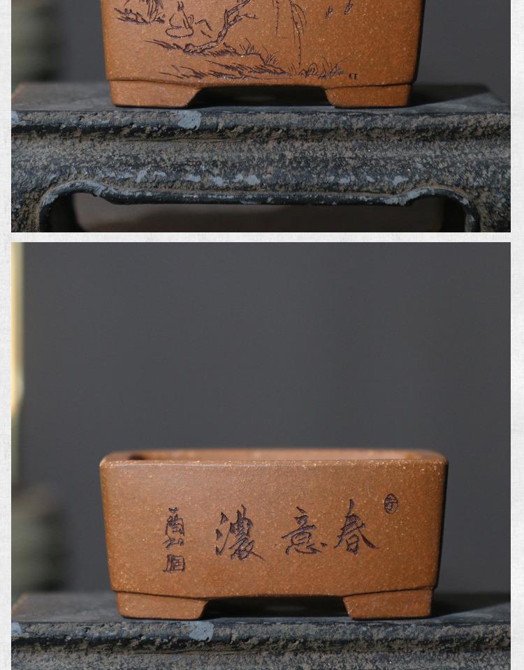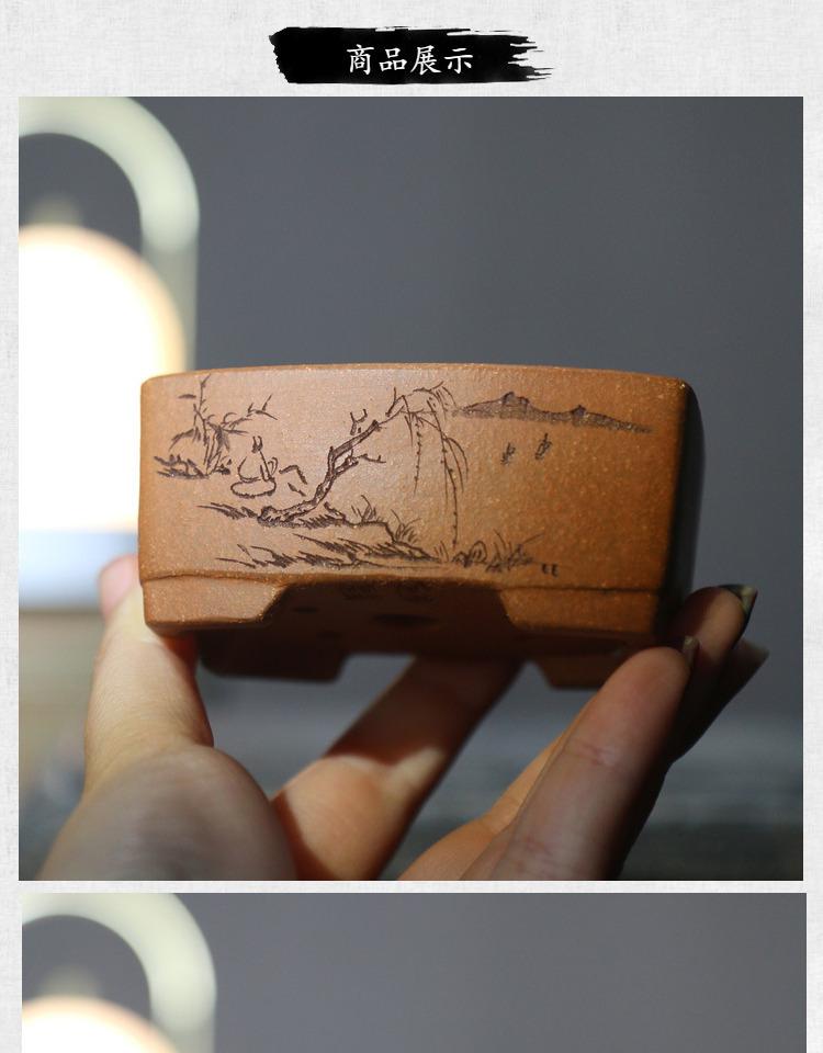 Maceta de arena morada para bonsái, cuadrada, pequeña, hecha a mano, de escritorio, verde, en miniatura, estilo chino