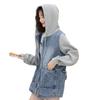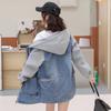 Chamarra de mezclilla con capucha empalmada para mujer Primavera y Otoño Nueva Versátil Moderna Holgada Talla Grande Largo Medio Petite Top Trendy