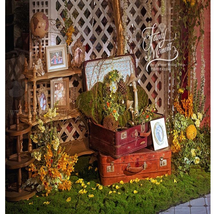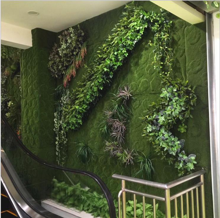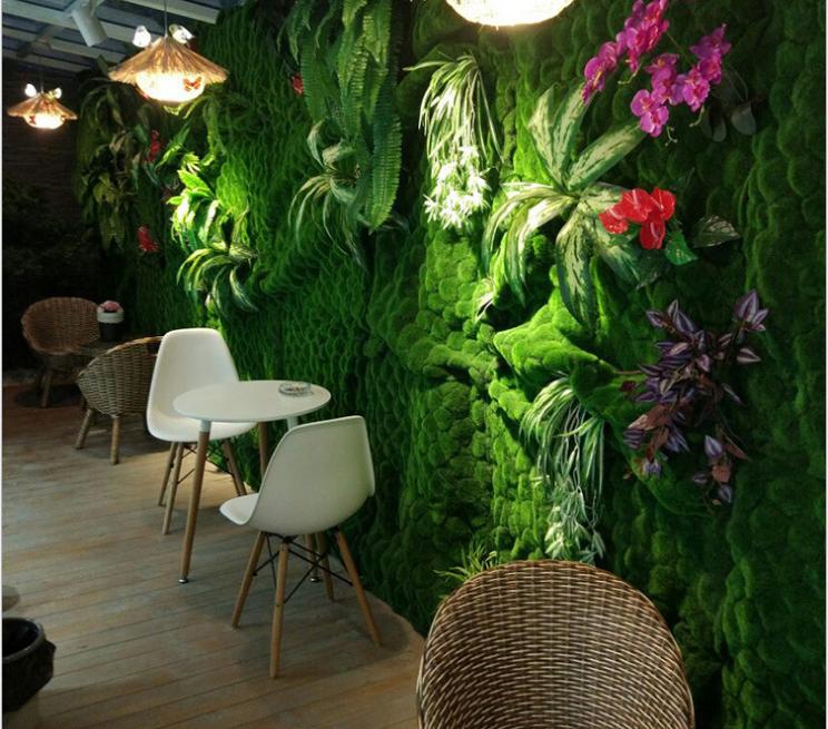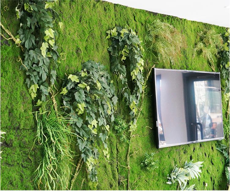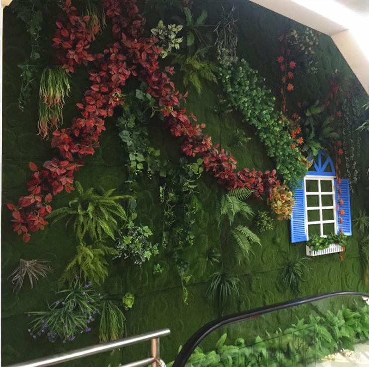 Simulação de musgo falso, gramado falso, bonsai, pavimento, planta verde falsa, parede, janela, decoração de parede