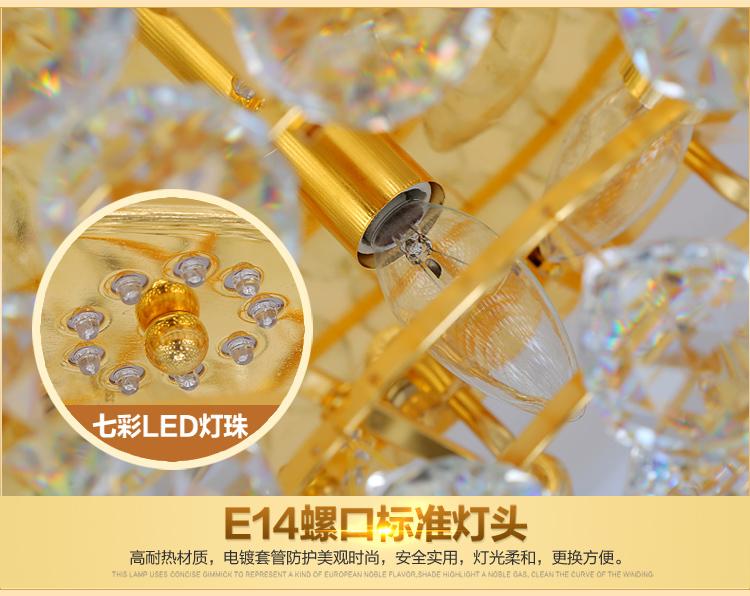 Lámpara de cristal redonda dorada moderna, lámpara de sala de estar, lámpara de techo LED, lámparas de dormitorio, iluminación atmosférica para comedor