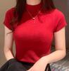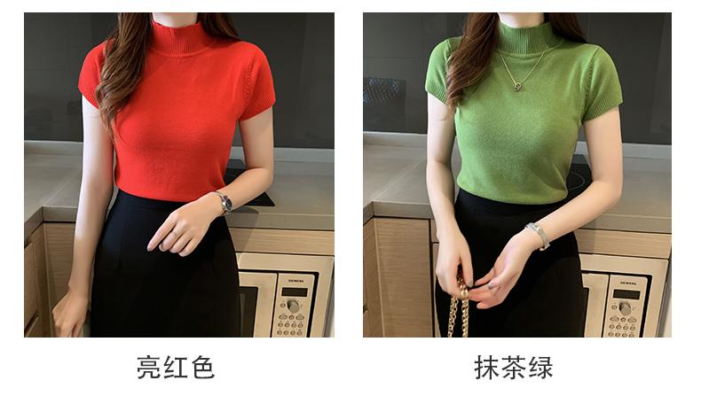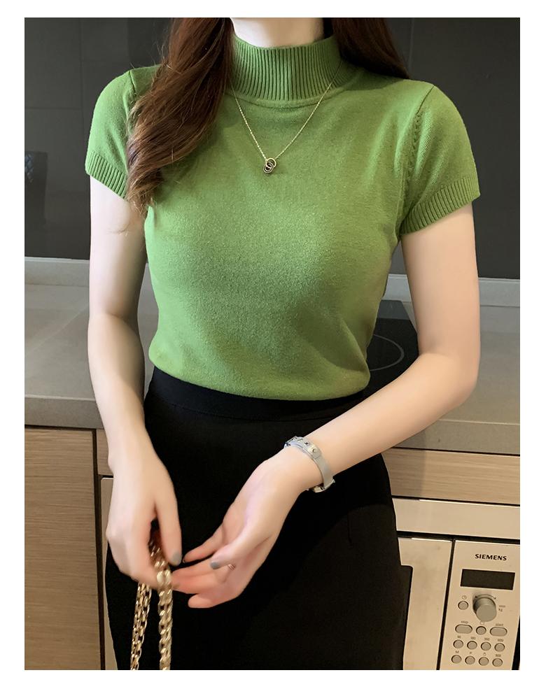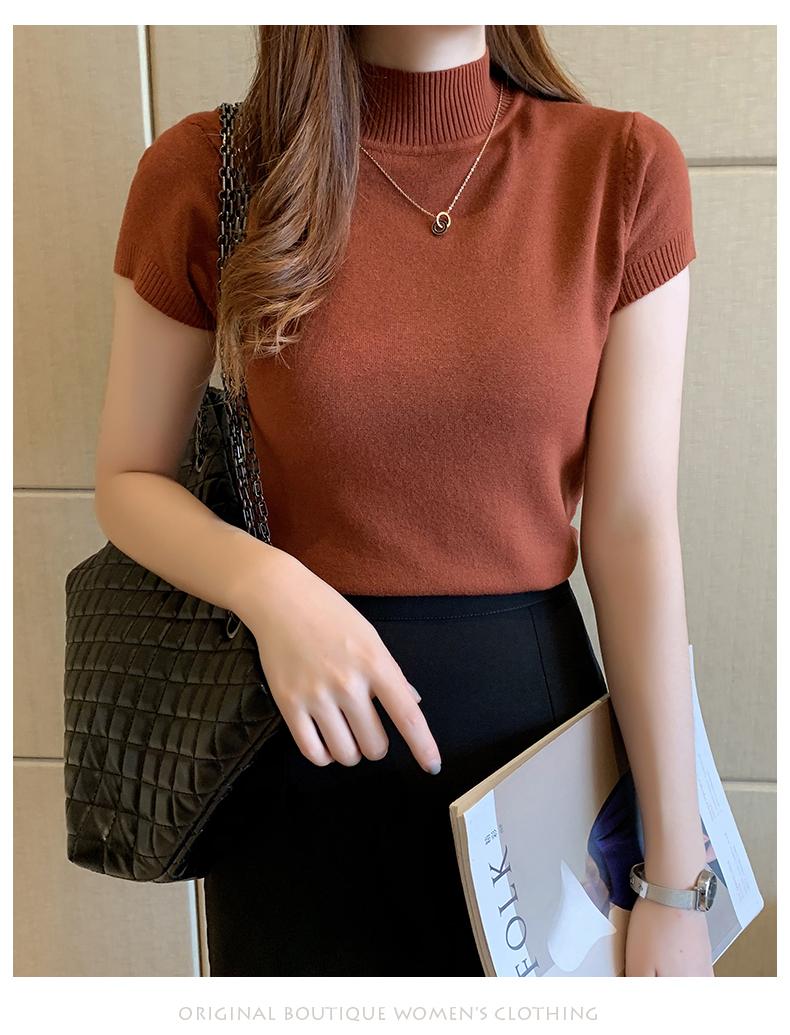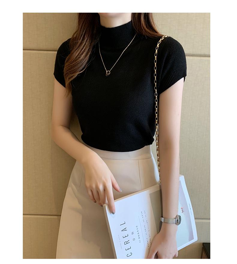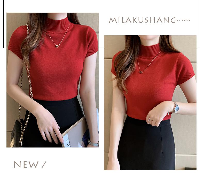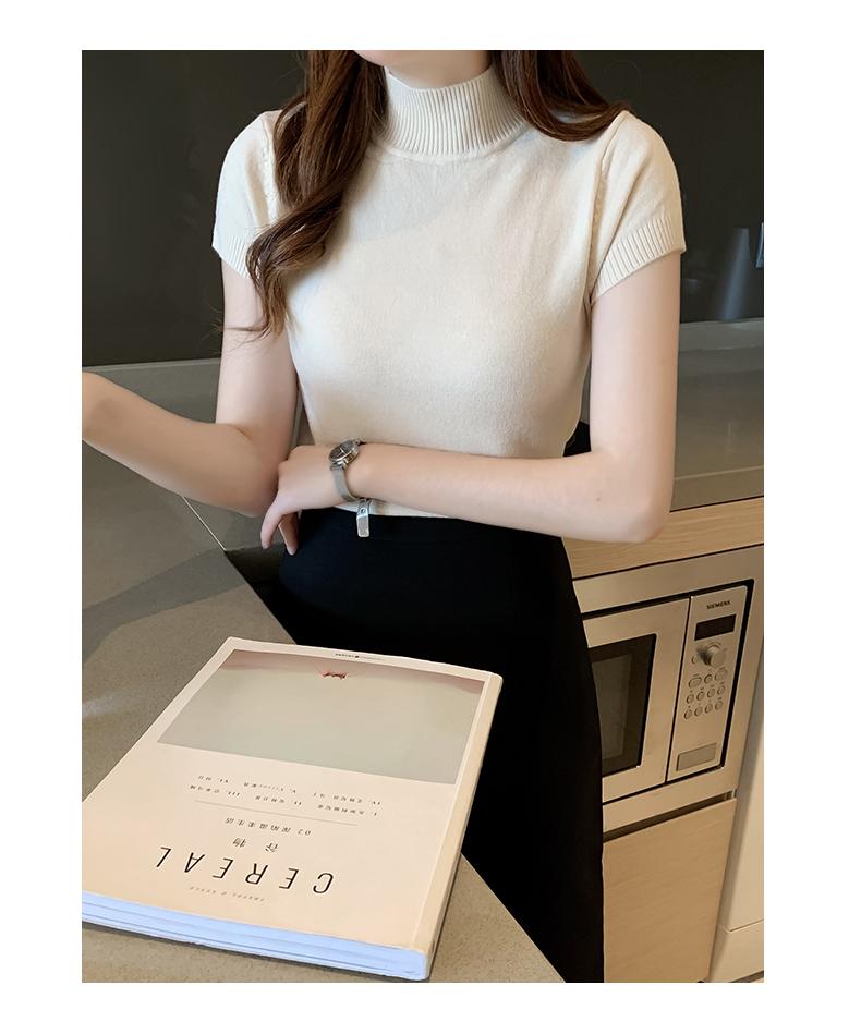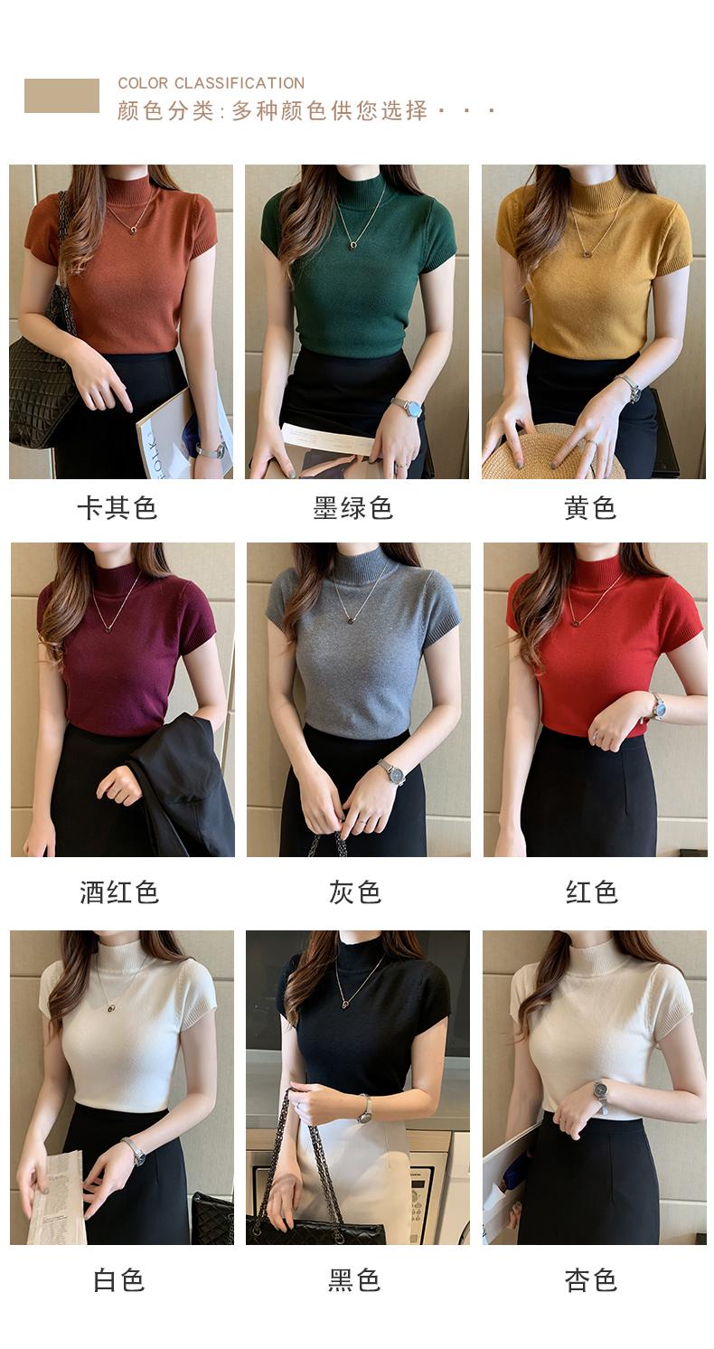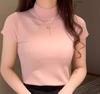 2024 Outono Nova Meia-alta Gola Base Camisa Feminina Primavera e Outono Manga Curta Camisa de Malha Suéter Fino Interno Colete Top