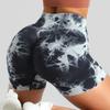 Pantalones deportivos ajustados de cintura alta con efecto melocotón, ajustados para yoga y fitness, sin costuras, con efecto tie-dye y efecto flotante.