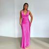Vestido de verano 2024 nuevo sexy con escote en V, estilo europeo y americano, sin espalda, color sólido, moda Joker