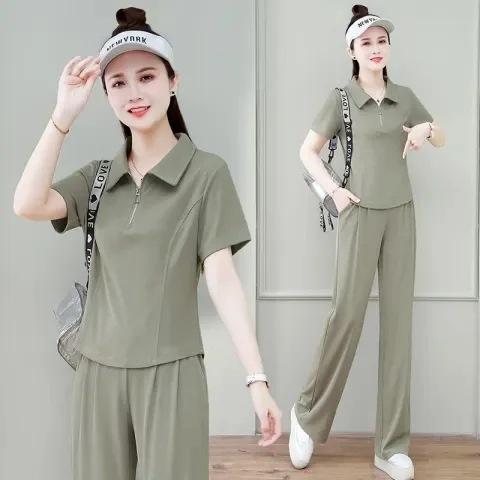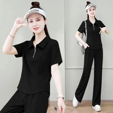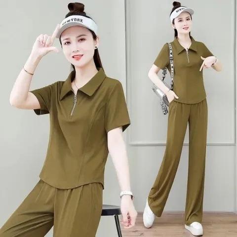 Conjunto de ropa deportiva de moda para mujer, verano 2024, holgado, nuevo estilo, pantalones anchos de seda de hielo informales antiedad, conjunto de dos piezas
