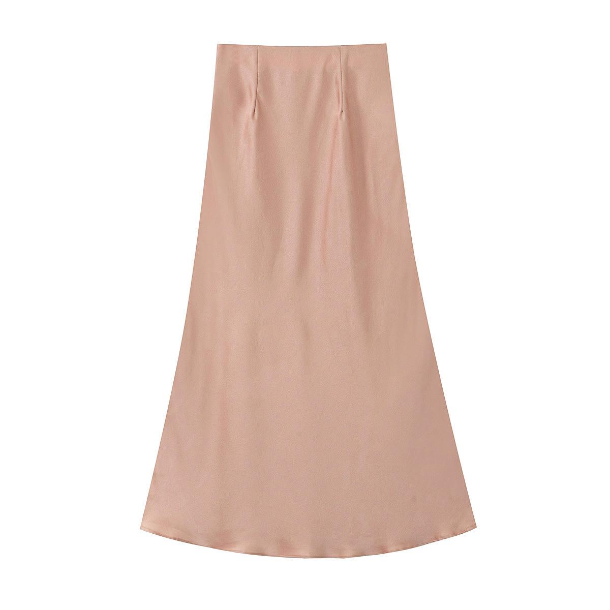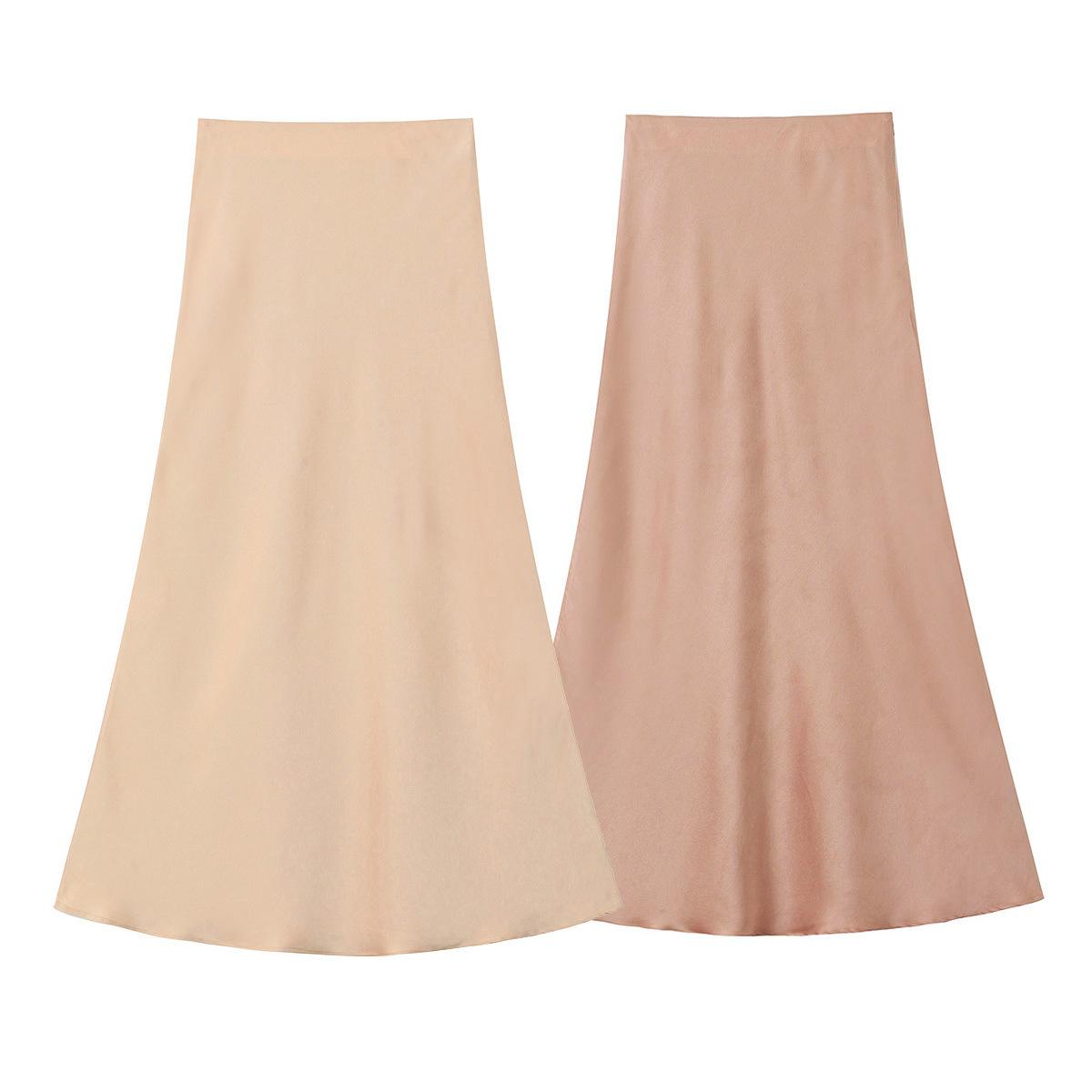Falda midi de satén de seda ligera y madura de color sólido para mujer, estilo transfronterizo europeo y americano, primavera y verano de 2024