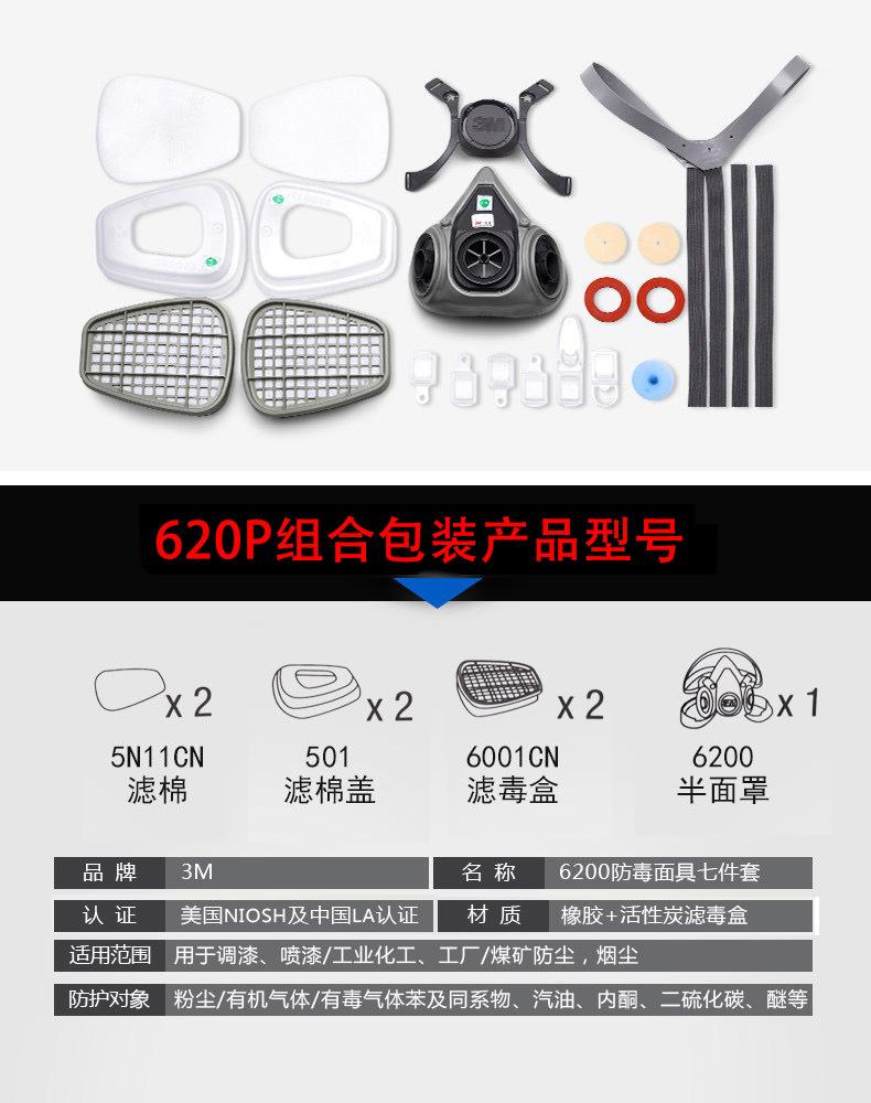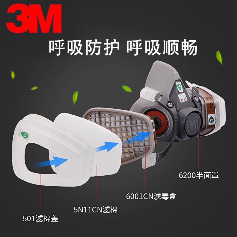 Máscara de gas 3M6200, traje respirador con formaldehído, pesticidas, pintura en aerosol, protección respiratoria, máscara de carbón activado contra polvo y gases.