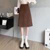 Falda de pana de color liso para mujer, otoño e invierno 2024, nueva falda retro adelgazante de cintura alta irregular de longitud media para mujer