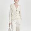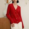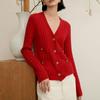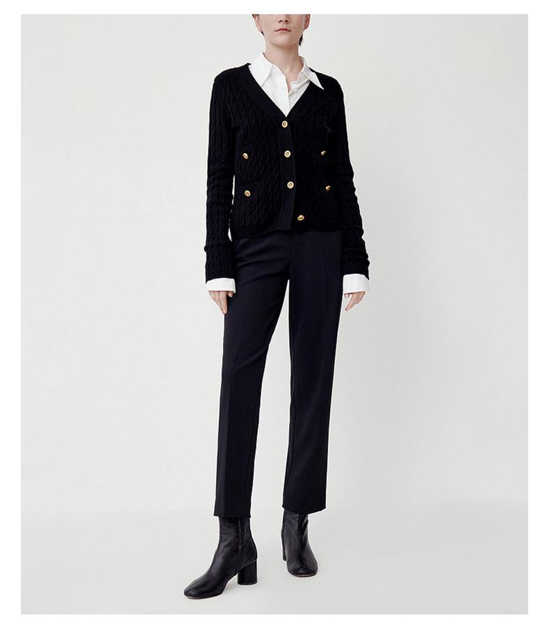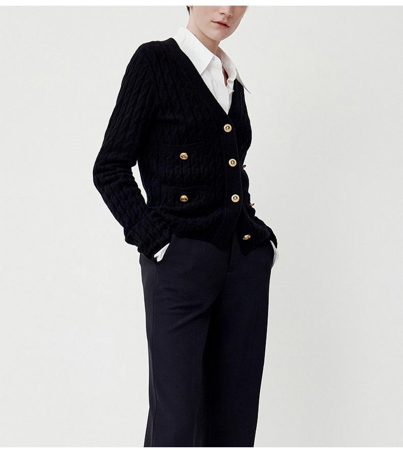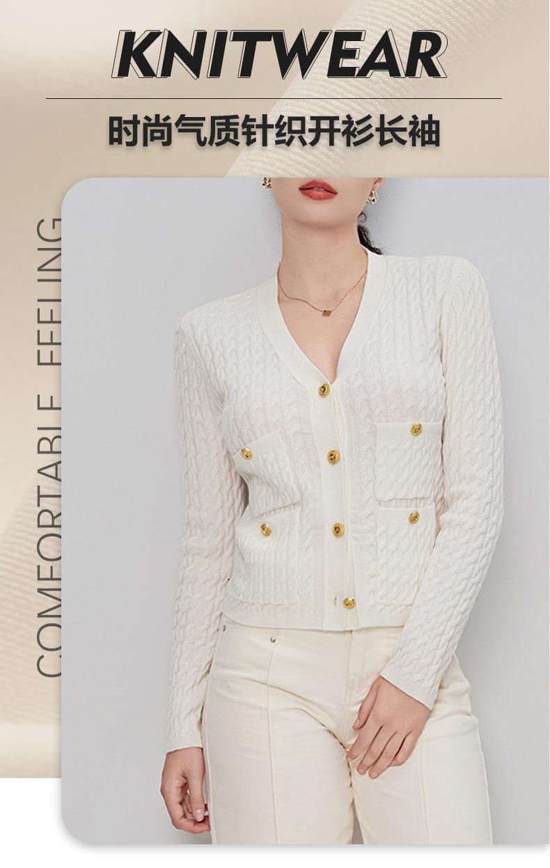 25 Otoño Nueva Moda Elegante Cárdigan de Punto de Manga Larga para Mujer Rayas Verticales Versátil Look Adelgazante Cárdigan de Punto de Lana Top para Mujer