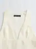 2024 Primavera y Verano Nuevo Chaleco sin Mangas Europeo y Americano Transfronterizo para Mujer Cuello en V Ajustado Blanco Arroz Elástico Top Ajustado