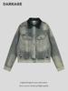Chamarra de mezclilla retro americana para mujer, corta, primavera y otoño 2025, casual, holgada, diseño lavado y desgastado, chamarra de manga larga