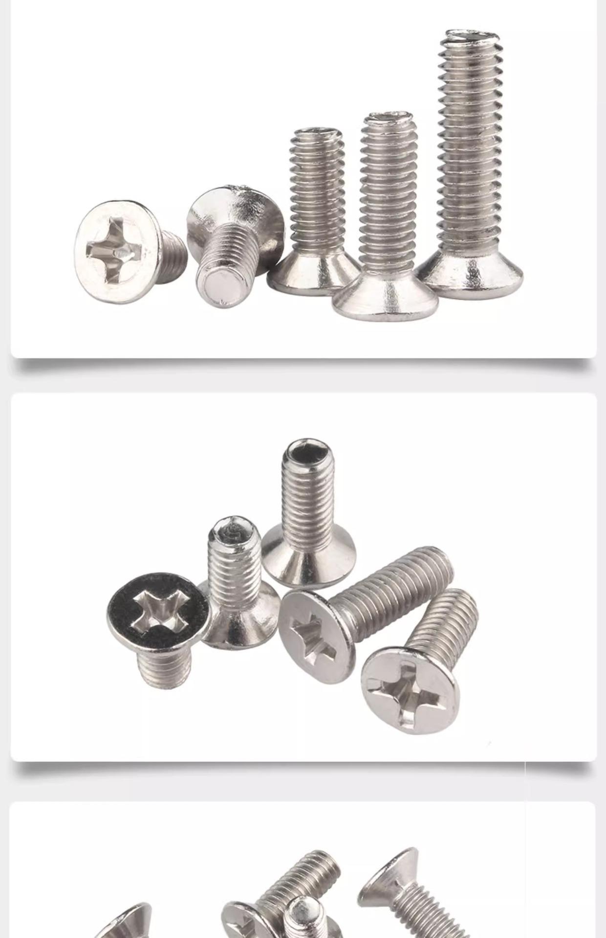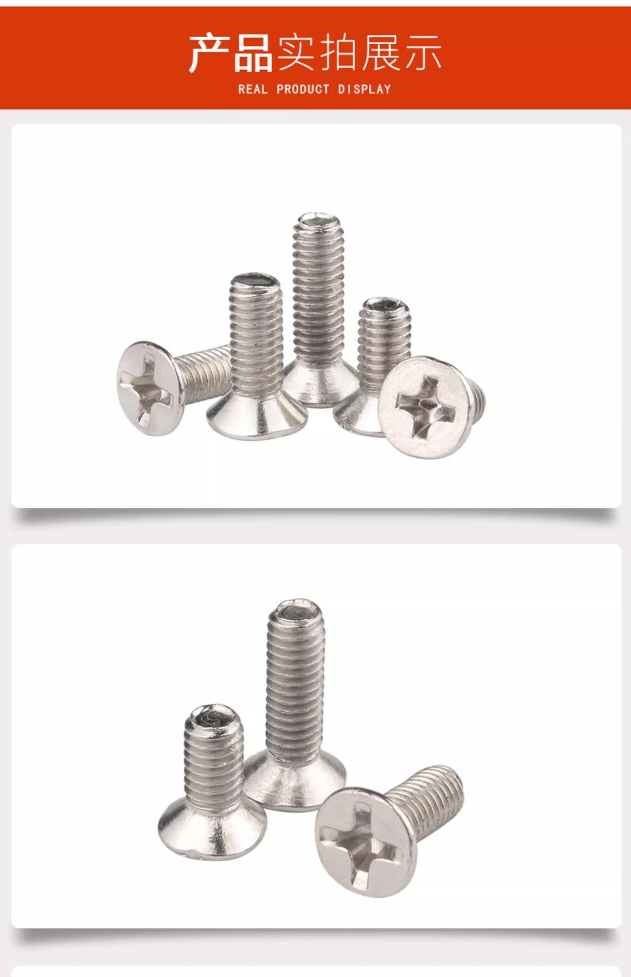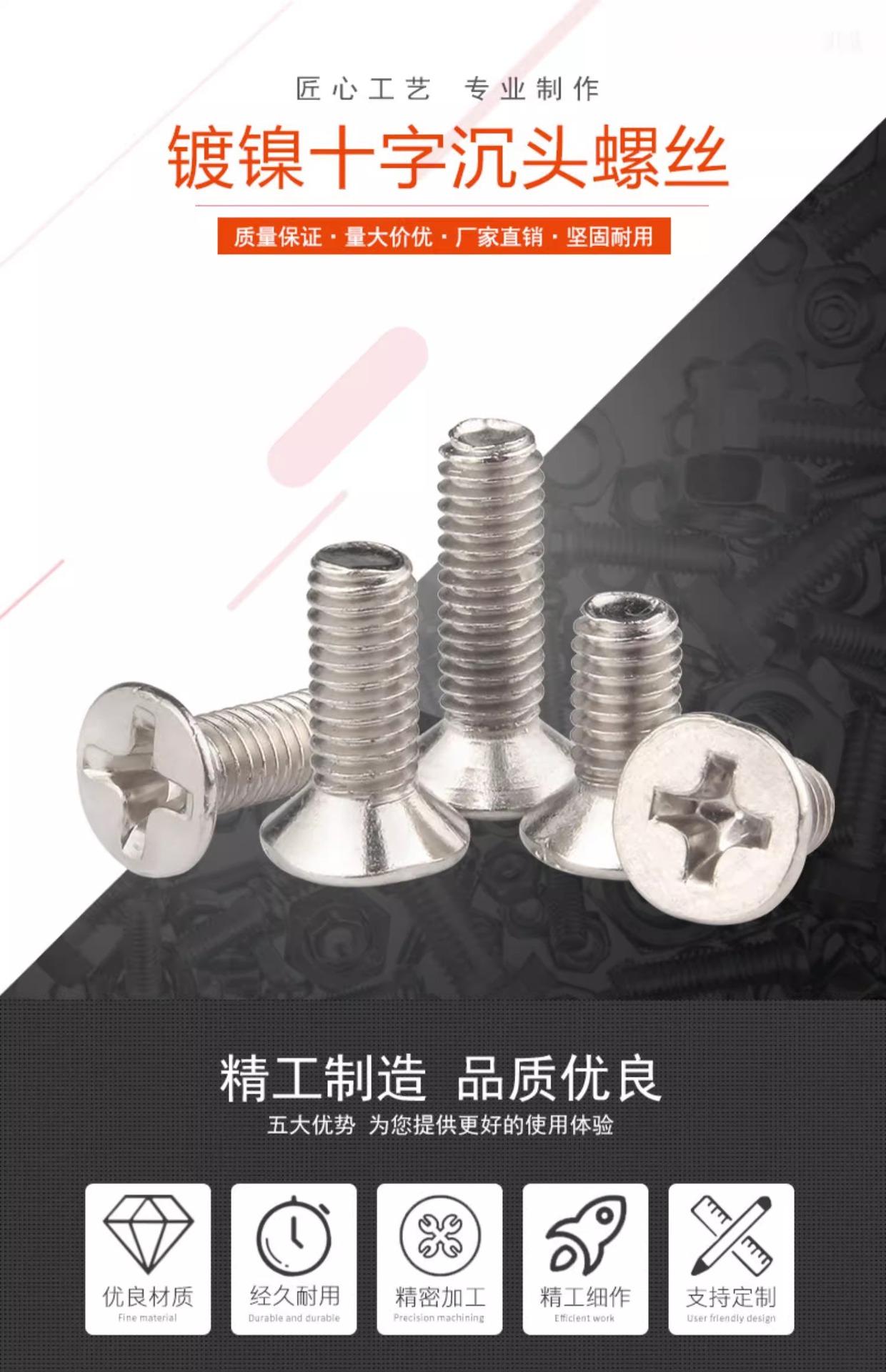 Tornillo de cabeza avellanada cruzada de hierro niquelado, tornillo de cabeza plana, tornillo de cola plana, tornillo de máquina de alambre pequeño M2M3M4M5M6