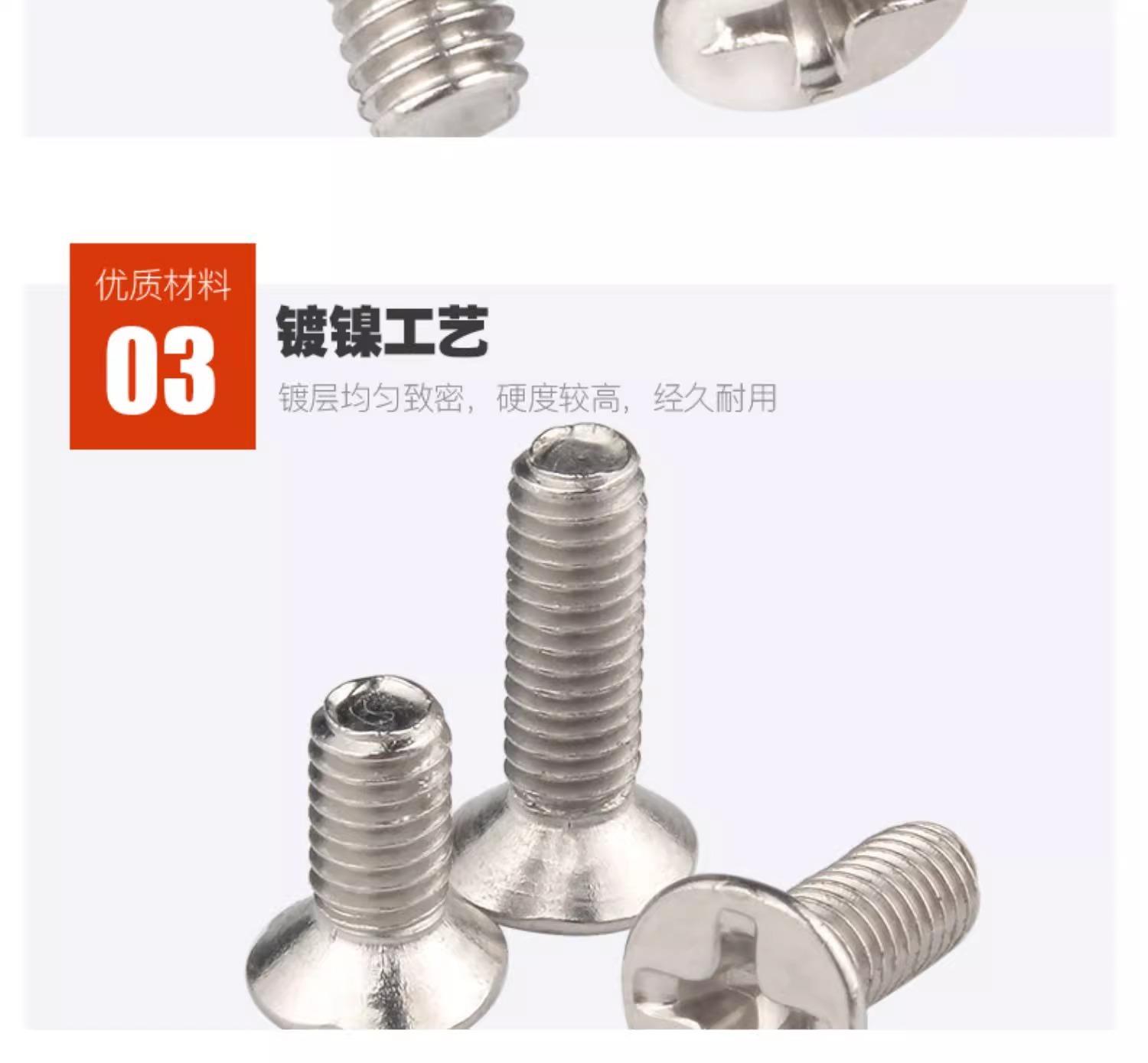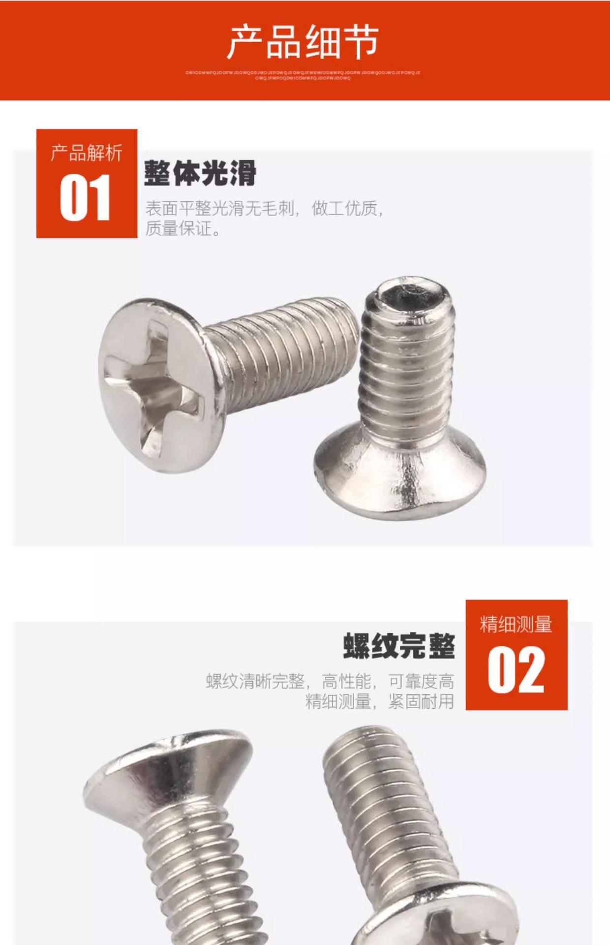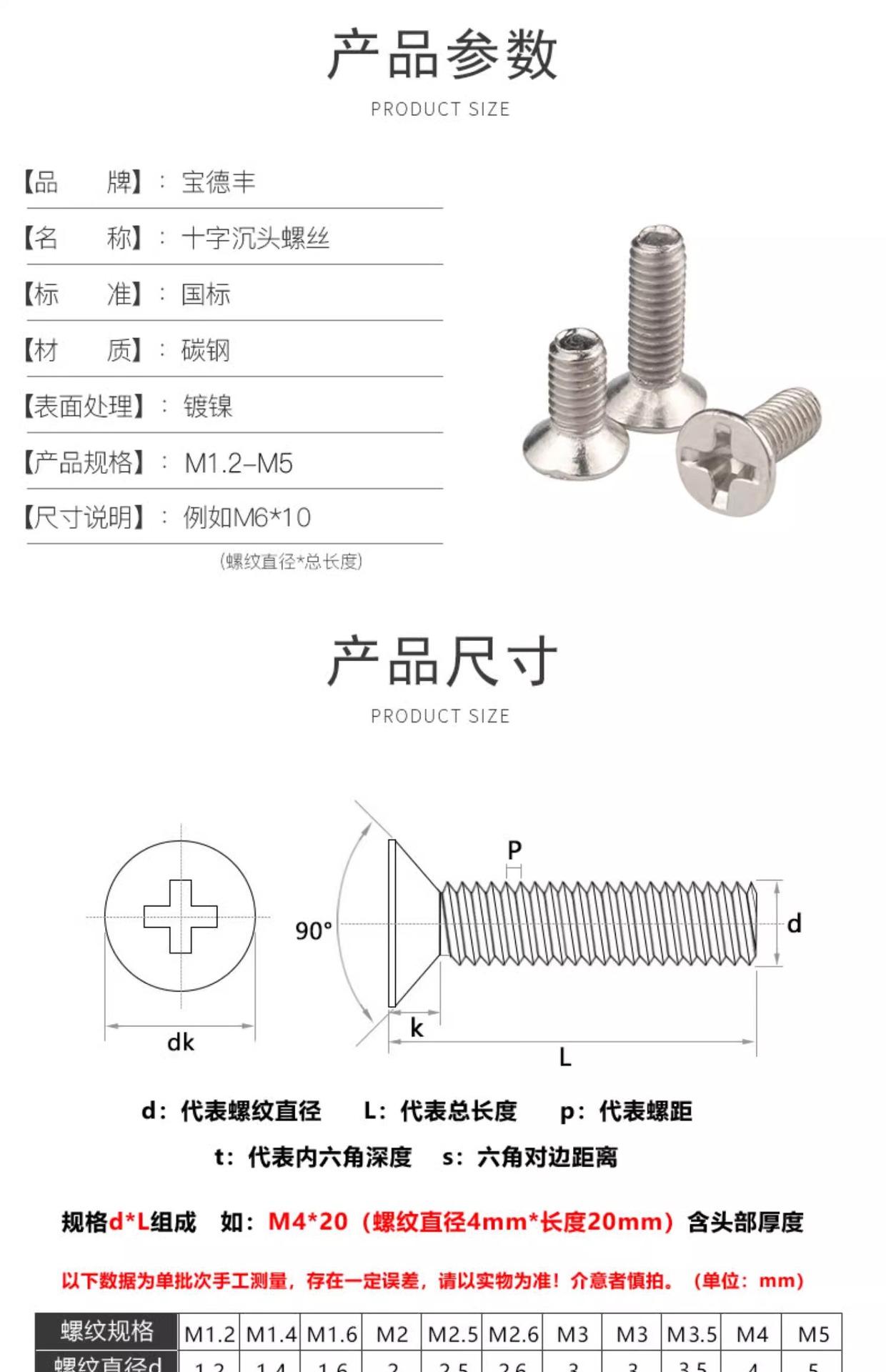 Tornillo de cabeza avellanada cruzada de hierro niquelado, tornillo de cabeza plana, tornillo de cola plana, tornillo de máquina de alambre pequeño M2M3M4M5M6