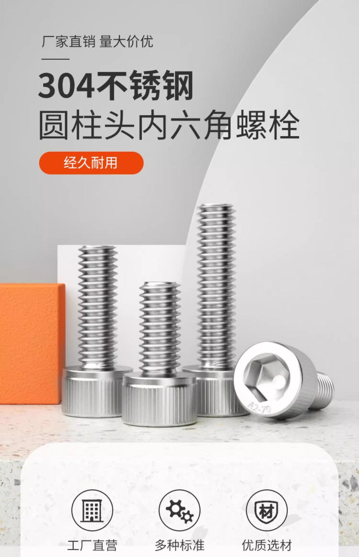 Tornillo de cabeza hueca hexagonal de acero inoxidable 304, tornillo de cabeza ahuecada, perno de cabeza cilíndrica, tornillo extendido 1.6M2M3M4M5M6M8