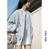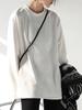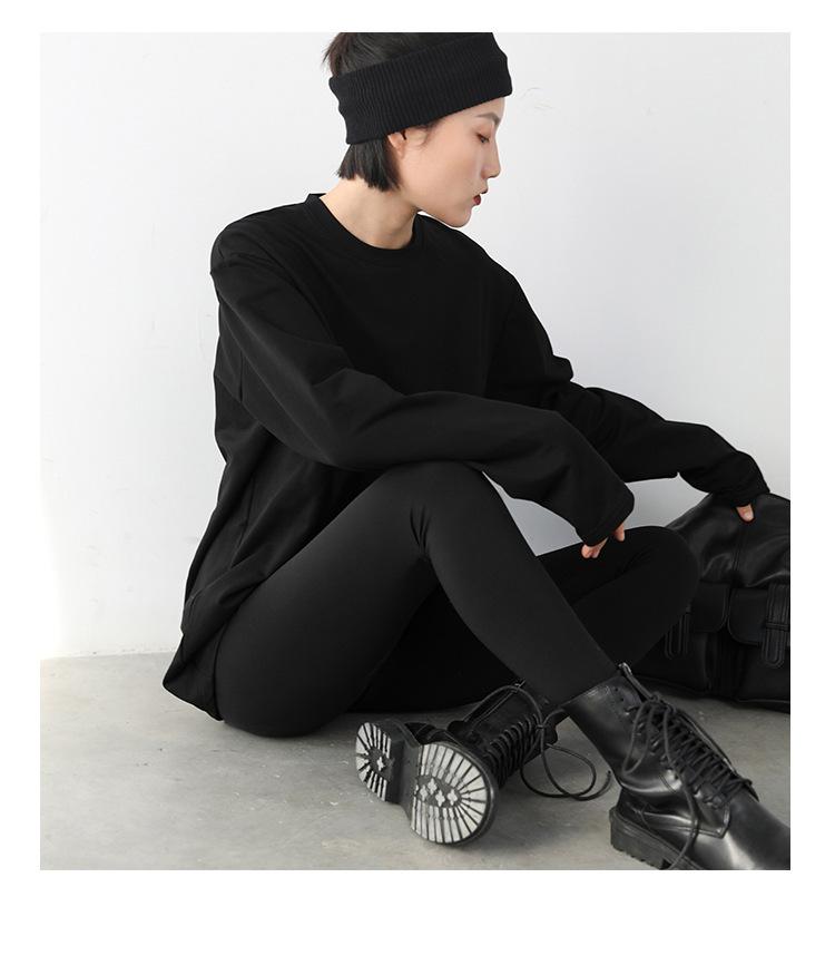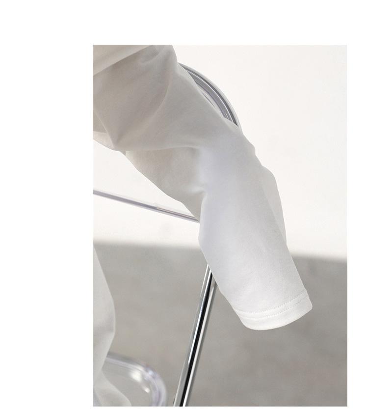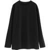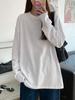 Camiseta blanca apilada de manga larga con cuello redondo, holgada, de color liso, para mujer, de principios de primavera y otoño de 2025.