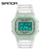 Reloj electrónico Sanda Cross-border Square con correa transparente, multifuncional, luminoso, para deportes acuáticos al aire libre, para estudiantes.