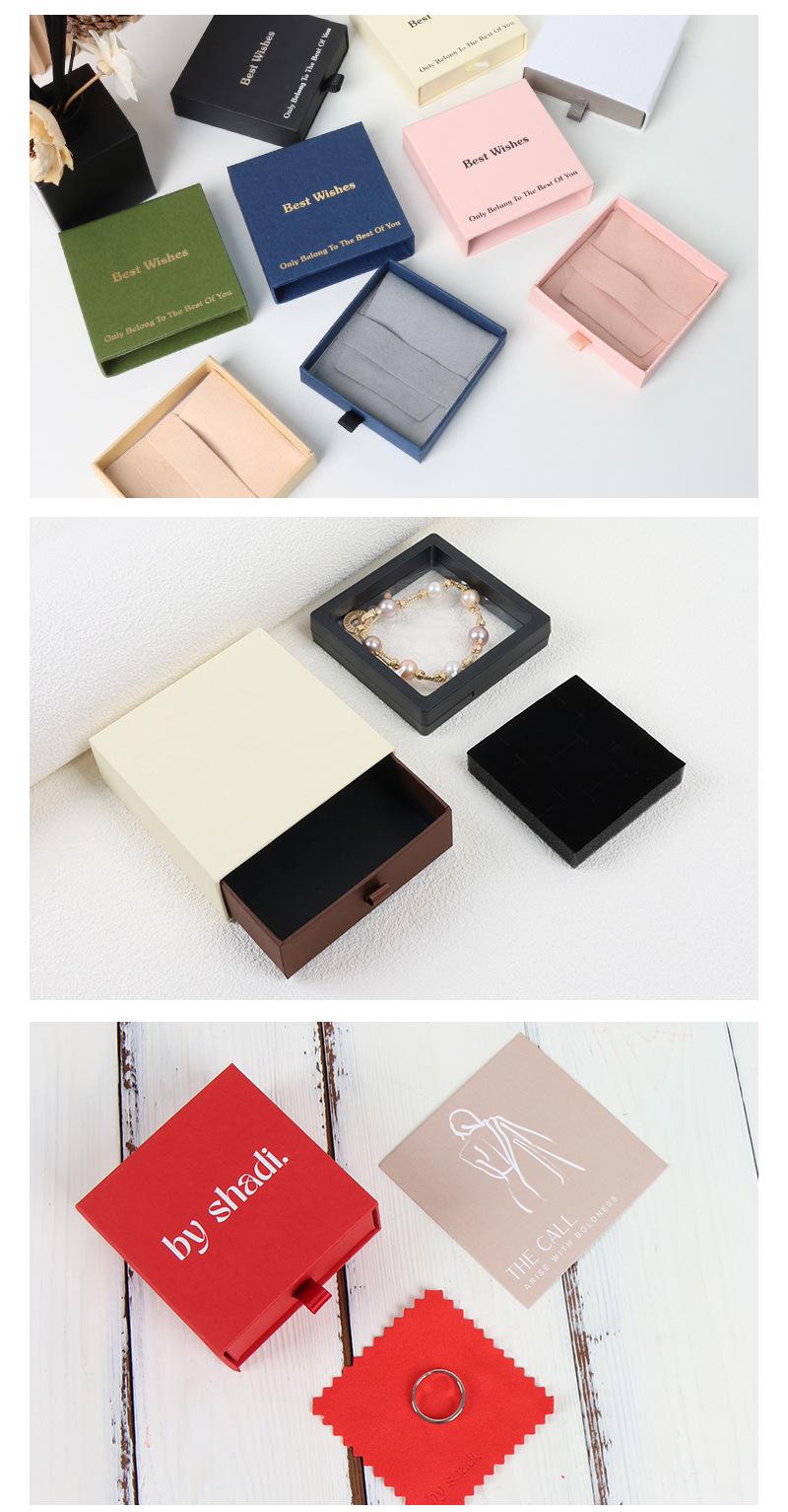 Caja Cajón para Pulsera Anillo de Papel Espacial Lista para Envío Venta al Mayoreo a Juego Bolsa de Microfibra Forrada Caja de Joyería Personalizable