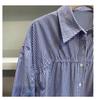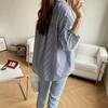 Comercio Exterior Venta al Mayoreo Camisa de Largo Medio a Rayas Tops para Mujer Primavera y Otoño 2025 Nuevo Look Holgado Adelgazante Camisa Chaqueta Reductora de Edad