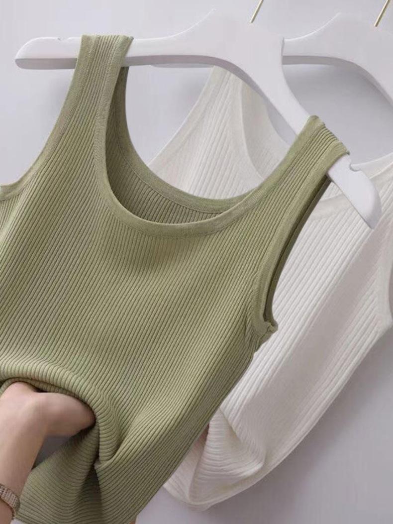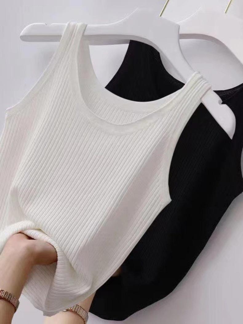 Chaleco sin mangas ajustado con tirantes de hilo de seda de hielo de verano, ropa interior de estilo coreano, camiseta de color sólido adelgazante.