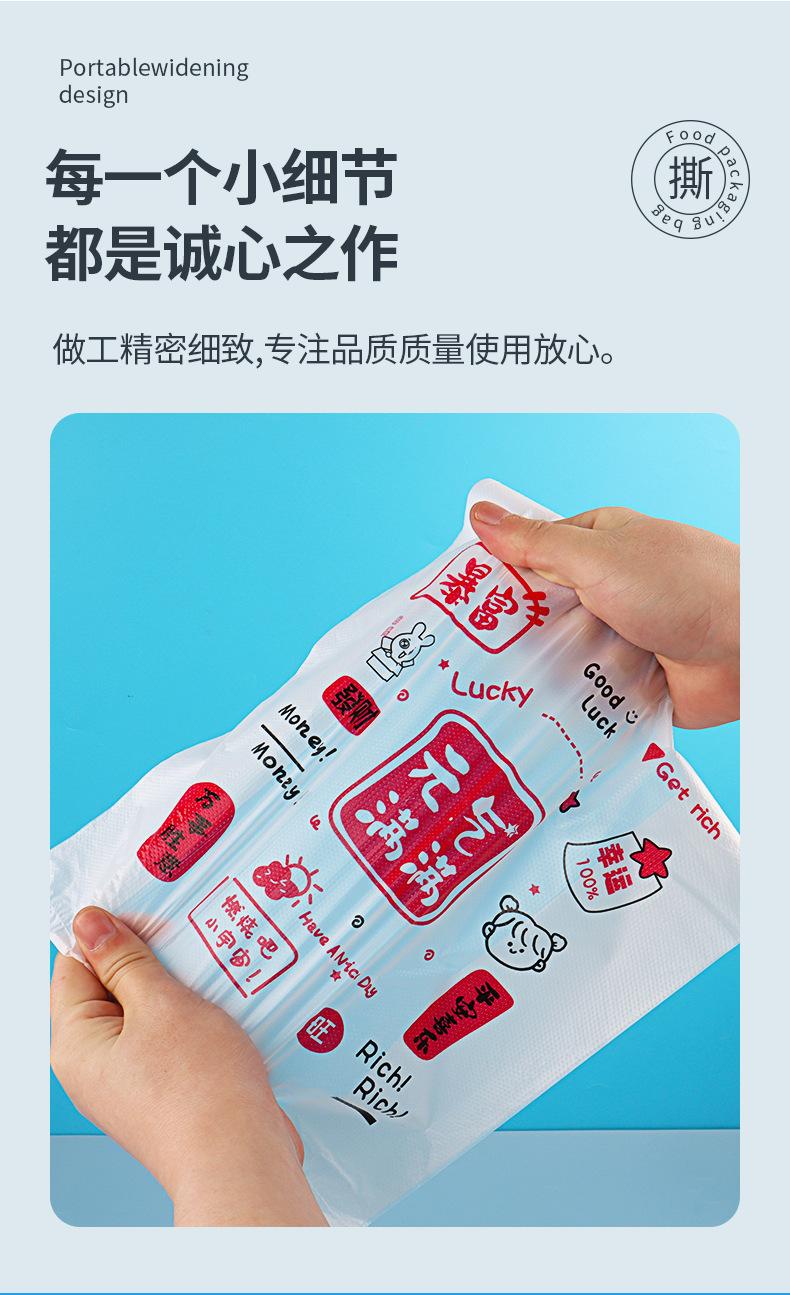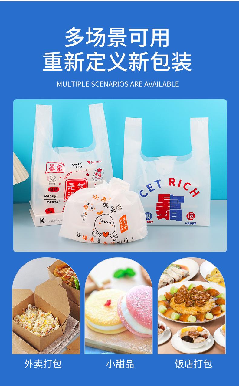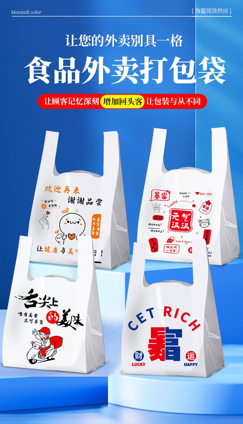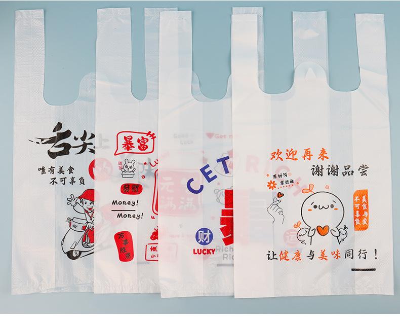 Bolsa de plástico desechable para llevar, bolsa de plástico gruesa con dibujos animados, bolsa de plástico desechable, bolsa de comida rápida popular