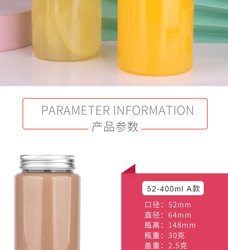Fabricante 52 Boca Botella de Té de Leche 400ml Botella de Jugo Desechable Pet Transparente Néctar de Álamo Botella de Plástico Grado Alimenticio