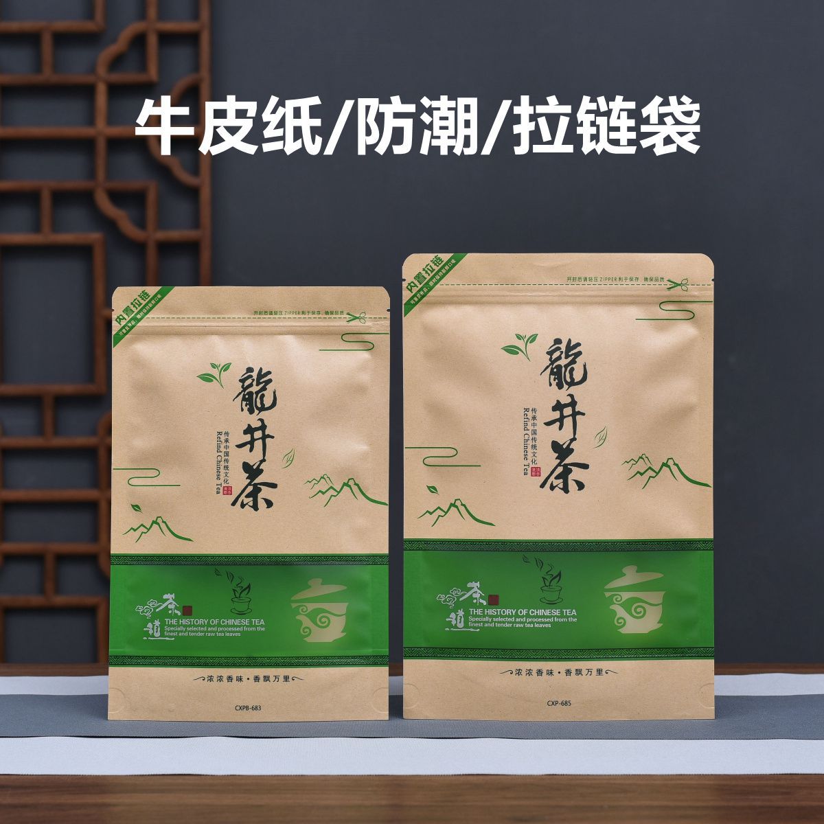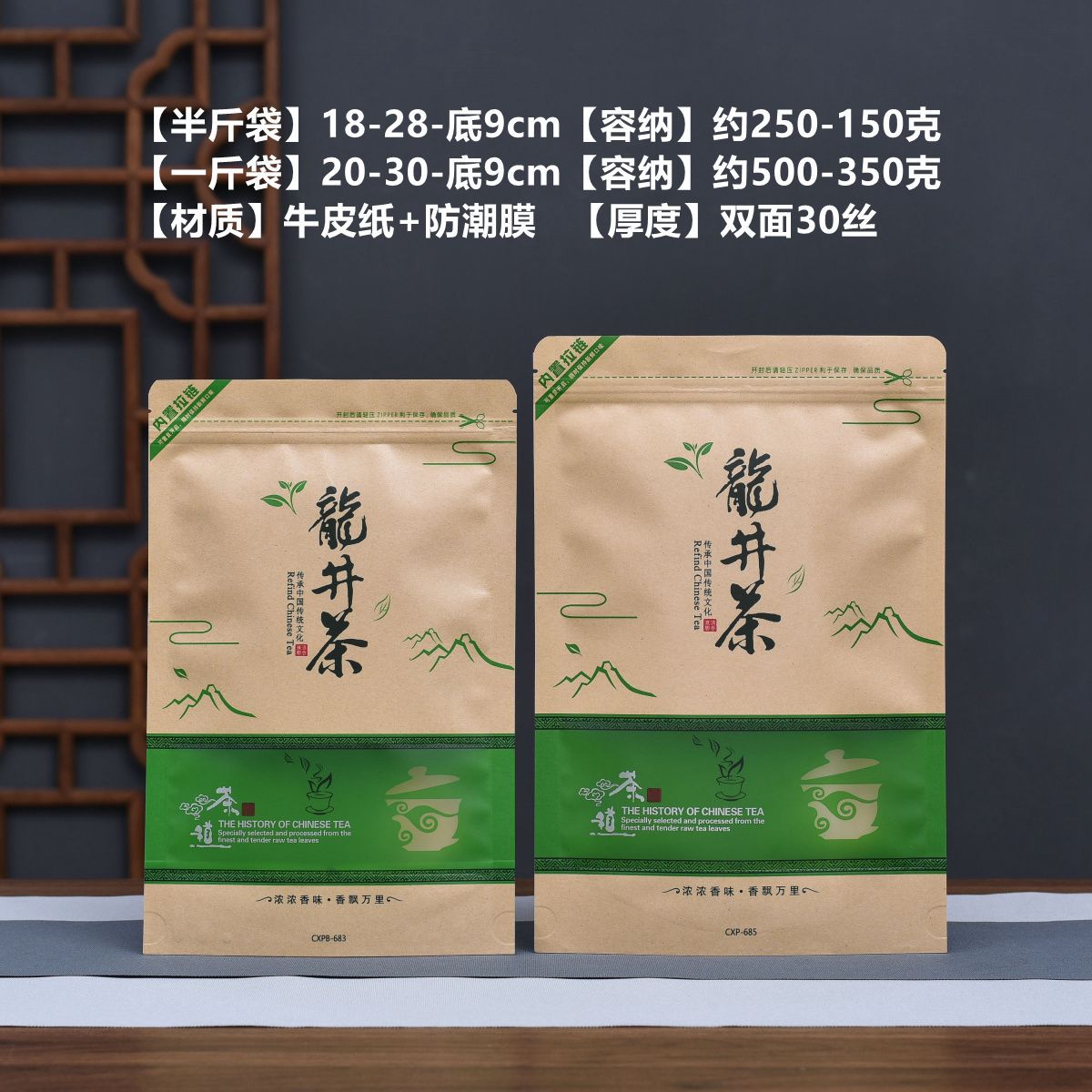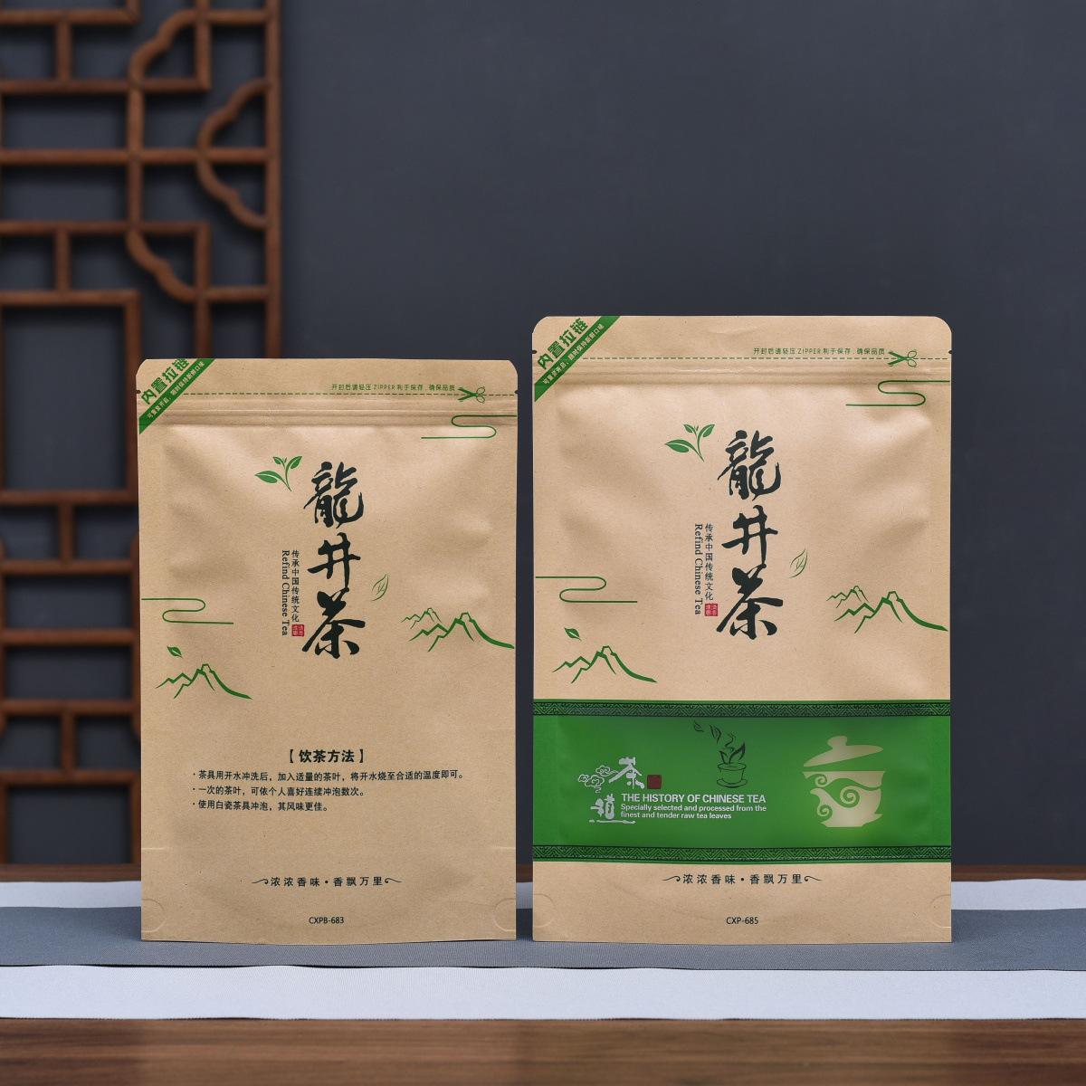 Bolsa autosellable para té Longjing medio kilo un kilo ventana bolsa de papel kraft a prueba de humedad bolsa de embalaje para té almacenamiento sellado con cremallera
