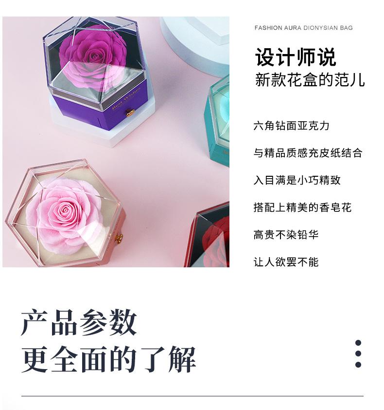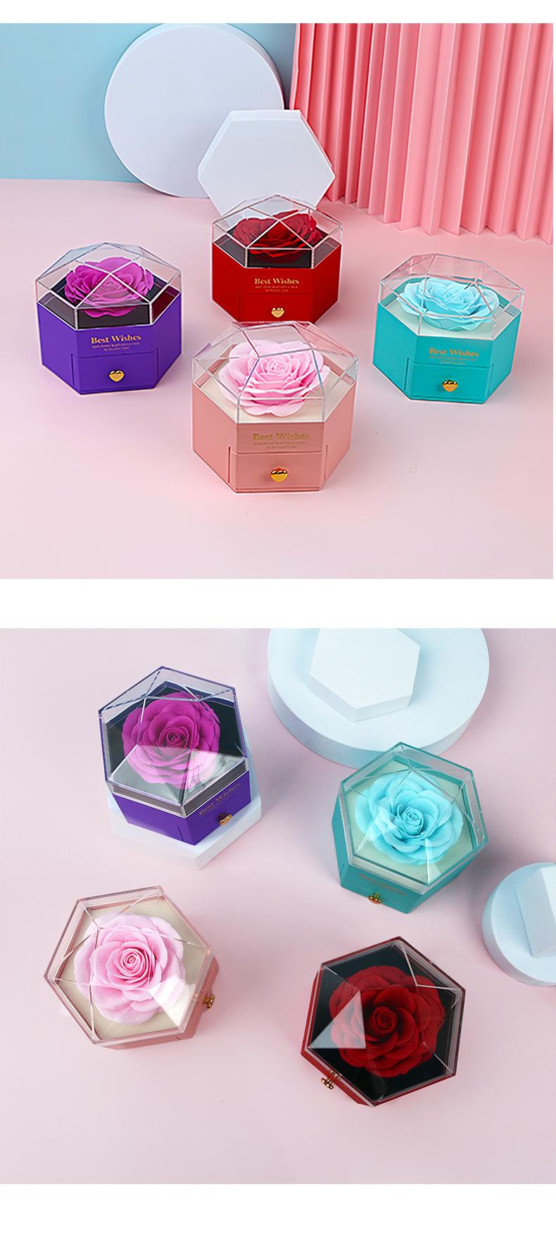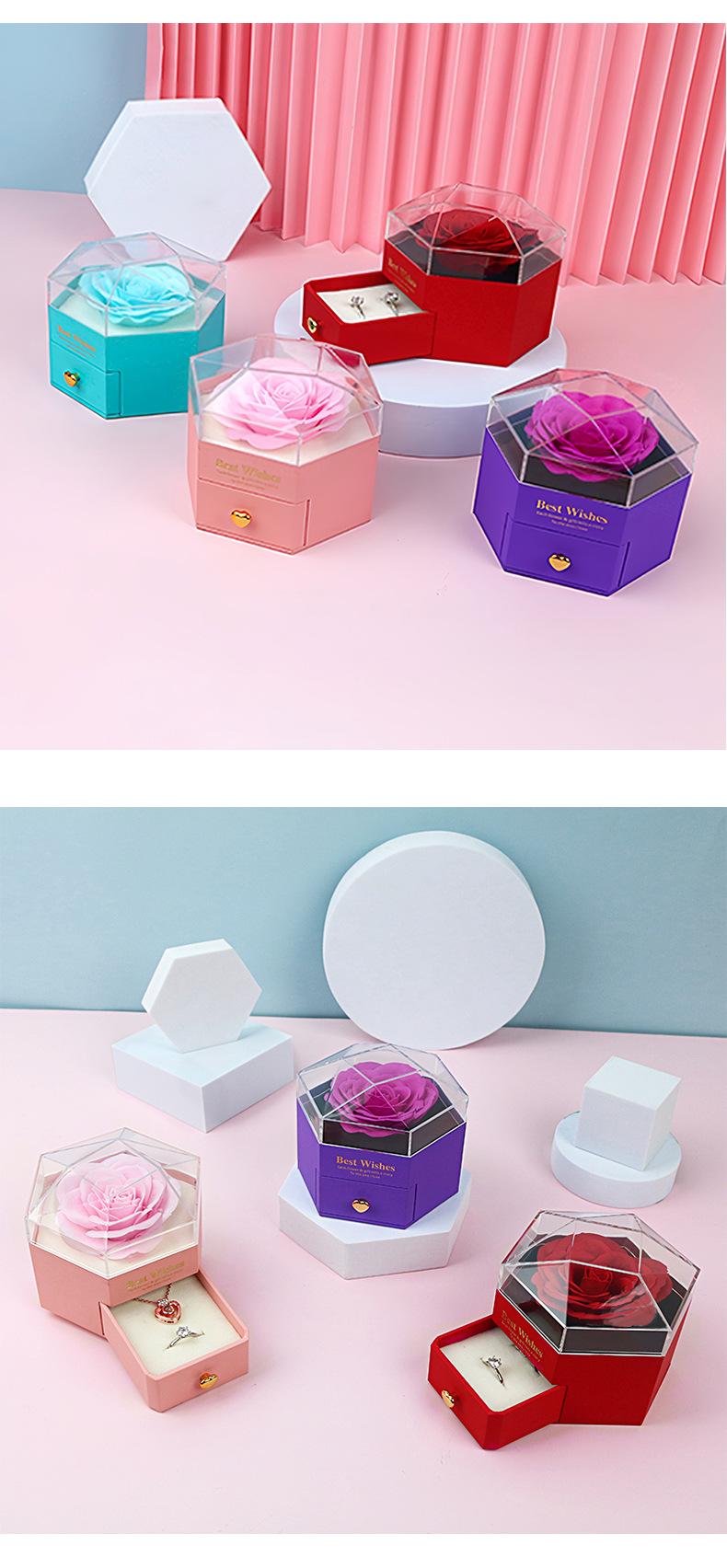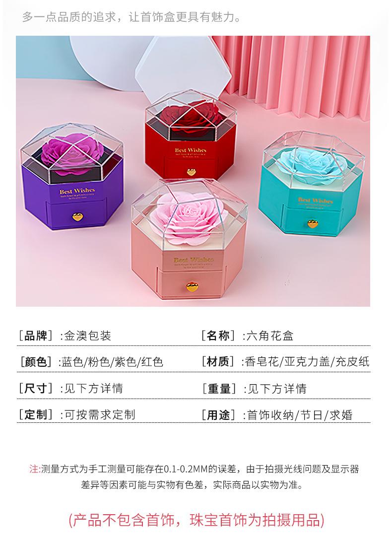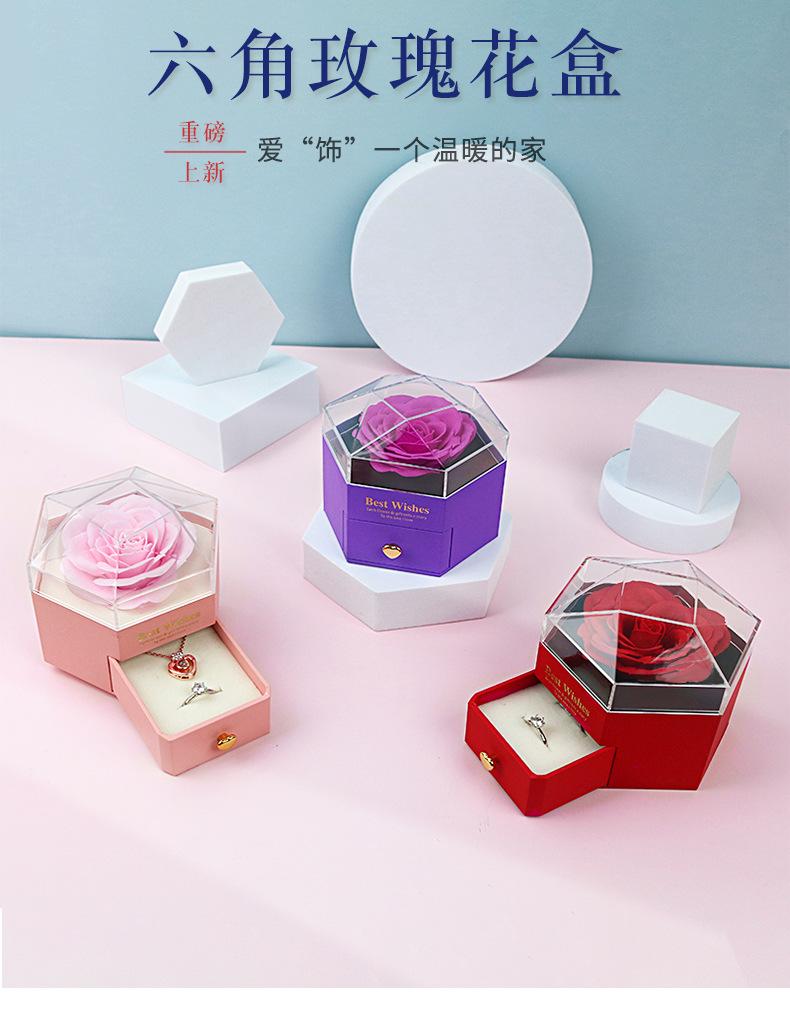 Nueva caja hexagonal con forma de rosa de diamante, flor de jabón, anillo, pendiente, collar, joyero, caja de cuero, papel, caja de regalo al por mayor